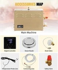 Perfect Performance - Perfect steam experience is exactly what we had in mind with steam generators. Quickly produce a consistent flow of soft and smooth steam thanks to the cleverly designed dual tank technology ,while minimizing any distracting operational noises. Waterproof intelligent touch controller - Easily adjust temp and working time to your liking of 95 - 131℉and 30 mins-12 hours. Stainless Steel Tanks and Quality Components (Include digital Control,the steam head, and the cable) Ensure Enjoy Years of High Quality Steam in your bathroom and problem free operation. The controller must be installed outside the steam room,if you need install inside the steam room,you can choose ST series 3KW/4.5KW/6KW/7KW/8KW/9KW steam generator Easy to Install and Use - compact design permits installation in almost any small space near the shower, such as a vanity or closet. For the wiring connection for 110V, just connect the wires to 2 hot line (L1 and L2),No neutral is needed.The wire connection for 220V, just connect the wires to hot (L) and neutral line (N). the required current is at least 14A. It is really easy to your local electrician. If you need any help, feel free to contact us. Quick steaming and warming up quickl y - With auto drainage function, no need manual drainage, Quick steaming and warming up quickly, LED display segment heating, automatic segment heating, with automatic diagnostics and prompt information,More Intelligent and Lower energy consumption Safe and Reliable - CE and ISO9001:2000 certificated , SGS verification report , water shortage and overheat protection, with external light switch, automatic water inlet ,and automatic drainage. Package list