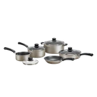 Product details 9-Piece Simple Cooking Nonstick Cookware Set provides all the cooking essentials. The interior nonstick coating ensures easy cooking and simple cleanup, while heat- and shatter-resistant tempered glass lids allow quick monitoring of cooking progress. The aluminum cookware set is lightweight yet durable and contains an assortment of pieces to create many different meals for a range of attendees. The set is easily be washed by hand between uses, and makes a decent starter set or addition for people who enjoy pot size options when preparing meals. It's available in two different colors, so you can get the set which will work best for your current kitchen design. The 9-Piece Simple Cooking Nonstick Cookware Set makes meal prep uncomplicated and cleanup easy. Complete cookware set with nonstick interior for easy cooking and cleaning Riveted, stay-cool handles Heat- and shatter-resistant tempered glass lids allow easy monitoring of cooking progress Compatible with gas, electric and ceramic glass cooktops Set includes: 7" saute pan, 9" deep saute pan with lid, 1 qt sauce pan with lid, 2 qt sauce pan with lid, 4 qt Dutch oven with lid On Jul 9, 2025 at 20:35:15 PDT, seller added the following information: On Jul 11, 2025 at 19:48:01 PDT, seller added the following information: