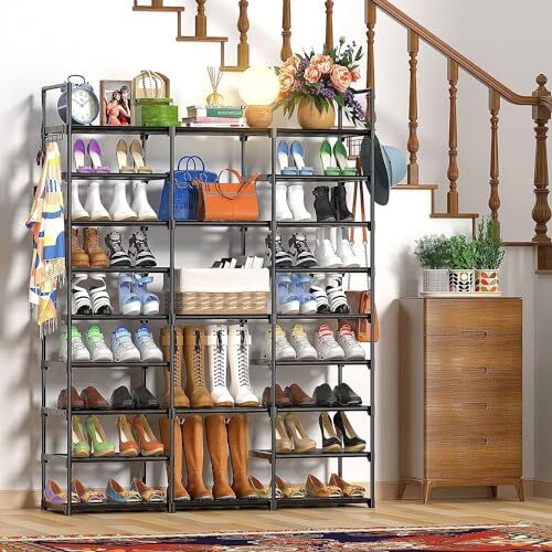 Return Policy Fast Delivery Trusted seller 9-Tier Metal Shoe Rack Organizer for 50-55 Pairs - Space Saving Shoe Storage Shelf for Entryway, Closet, Bedroom, Hallway Product Description LARGE CAPACITY 9 TIERS SHOE RACK --- Size: 50 x 12.0 x 62.4 Inches, single layer is about 6.8 inches. Heightened and wided design make this large shoe rack stores up to 50(max 55) pairs adult shoes, won't wobble or topple. The height of this shoe storage rack can be freely assembled according to the needs of the shoes in different heights, such as Martin boots, women's boots, snow boot, high heels, sneakers, slippers, kid shoes, roller skate etc. EXPANDABLE & DIVIDABLE SHOE RACK--- You can DIY this 9 tiers shoe rack according to your family storage needs. Split one big shoe rack into two or more stroage racks, you can place the small shoe rack in closet, the other rack in your entryway. In any case, a sturdy organizer rack can keep your shoes or toys, tools well organized. DIY shoes racks, great solution to keep your entryway, closet, dormitory, garage... away from mess. STURDY COMPACT CONSTRUCTION --- large shoe organizer rack applied high quality PP as connectors and 13mm diameter sturdy smooth powder-coated corrosion-resistant metal pipes, good stability and prevent rusting, enables this shoe rack load much heavier duty and more durable while using. with 2 rows versatile hooks(10 hooks), 6 PP thick waterproof PP cover sheets, waterproof and easy to clean. DISASSEMBLED & ASSEMBLED FREELY---With hammer, the simple structure, numbered parts and detailed instructions, Let you can spend less time assembling. Please refer to the installation manual of the free standing shoe racks. DIY the shape you need (some shape show on product details picture). 100% SATISFACTION GUARANTEE- offer LIFETIME professional customer service. If you have any question with our shoe rack, please let me know, we will full replacement ASAP! Tips: Use Warm water to soak the plastic part before use and use the Wooden Hammer provided for more Smoother installation. Shipping Returns Payment Shipping Shipping is FREE to all addresses other than APO/PO boxes in the lower 48 states. All our stock ships from US-based warehouses. Shipped via USPS or UPS (depending on location and package weight) Unless stated otherwise, all orders will ship within 24-72 hours of your payment being processed. Check our feedback to see the great reviews of FAST shipping we offer. Returns Seller does not accept returns Payment We currently accept payment via eBay managed payments only. Once payment is cleared, we will dispatch your shipment within 1-3 business days. Please refer to the "Shipping" tab for more information regarding shipping speed to your destination.