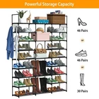 10-Tier Shoe Tower Rack Organizer Heavy Duty Shelf Storage 50 Pairs Space Saving 37.34 USD Free shipping 25 Pair 10 Tier Space Saving Storage Organizer Shoes Tower Rack Shelf Detachable 27.4 USD Free shipping Dustproof 10 Layer Shoes Cabinet Storage Organiser Shoe Rack Free Standing Space 27.68 USD Free shipping 10Tier Shoe Rack Wall Tower Cabinet Storage Organizer Home Holder Shelf Standing 11.86 USD Free shipping Over The Door Shoe Organizer Hanging Shoe Organizer 20 Mesh Pockets Shoe Holder 12.02 USD Free shipping Heavy Duty 2 Tiers Bamboo Shoe Rack Shoe Shelf Storage Shoes/Kitchen Organizer 22.99 USD Free shipping eBay 9Tiers Shoe Rack Shoe Organizer Large Shoe Storage Tall Shoe Holder Bag Toy Rack Featured Item Product Detail Image Gallery Product Description Overview: Our 9-tier large shoe rack, made of heavy duty iron tube and durable connectors, can hold about 50 pairs of shoes of different heights in a tidy way. Make full use of your vertical space and easy to fetch your shoes. It can be also divided into several small rack shelves to store your shoes, toys, books and more according to your needs. Two hooks are provided to hang your ties, keys, belts, scarves, etc.. 3Pcs PP sheets can be placed on the top to hold some small items. Just connect accessory parts for simple installation. Suitable for the entryway, dormitory, garage, etc.. Features: 9-Tier 3-Row Shoe Rack: With 9 tiers on two side rows and 5 tiers on the middle row,the shoe organizer shelf is 49.6x62.2x10.8in,which can store about 50 pairs of shoes of different heights like boots,high heels or slippers. Comes with 2 hooks which can hang your bags,ties,keys,purses,earrings,belts,scarves,etc.. 3Pcs PP sheets can be placed on the top to hold some toys,books,hats and other small items. Expandable & Dividable: This 9-tier 3-row shoe rack can be divided into several small storage racks according to your needs to hold your shoes,toys,books and more. Suitable to place it in the entryway,closet,dormitory,garage,etc.. Durable & Stable Structure: Made of sturdy iron tube with powder coating and high quality plastic connectors,this 9-tier shoe rack is durable,sturdy and heavy duty,which can hold up to 55lbs items. Perfect for your everyday organization. Keep Tidy & Save Space: This shoe storage shelve is an easy and affordable way to make the most out of your available space. Neatly arrange your shoes,accessories,toys,tools well organized and keep your room clean and tidy. Easy To Assemble: Come with complete accessories including iron tubes,plastic connectors,hooks,PP sheets and a wood hammer,easy to install with a few simple steps. User manual is included to help you assemble the shoe rack quickly and easily. Accessories: 92* Tubes(42cm) 2* Tubes(25cm) 17* Tubes(21cm) 10* Two-Way Connecting Tubes(28cm) 28* One-Way Connecting Tubes(28cm) 4* L-Shape Connectors 3* PP Sheets 2* Hooks 1* Wood Hammer* 1 Specifications: Brand: NewHome Product Type: 9 Tiers Shoe Rack Color: Black Material: Iron, Plastic, PP Weight Capacity: About 25kg/55lbs Tube: Diameter: 12mm/0.47in; Thickness: 0.23mm/0.009in Item Size: 126x158x27.5cm/49.6x62.2x10.8in(L x H x W) Item Weight: 3.85kg/8.49lbs Package Size: 55x35x10cm/21.65x13.78x3.94in Package Weight: 4.3kg/9.48lbs Package Contents: 1 x 9 Tiers Shoe Rack 3 x PP Sheets 2 x Hooks 1 x Wood Hammer 1 x User Manual Terms & Conditions Thank you for your business !