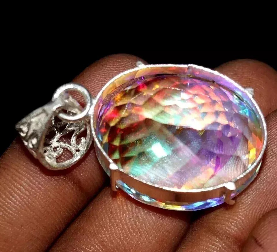 96 Ct+ A++ Natural Trillion Cut Mystic 925 Solid Silver Pendant Loose Gemstone