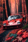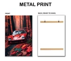 A Vibrant Red Vintage Car & Autumn Woods 40x60cm Canvas or Metal Print Wall Art