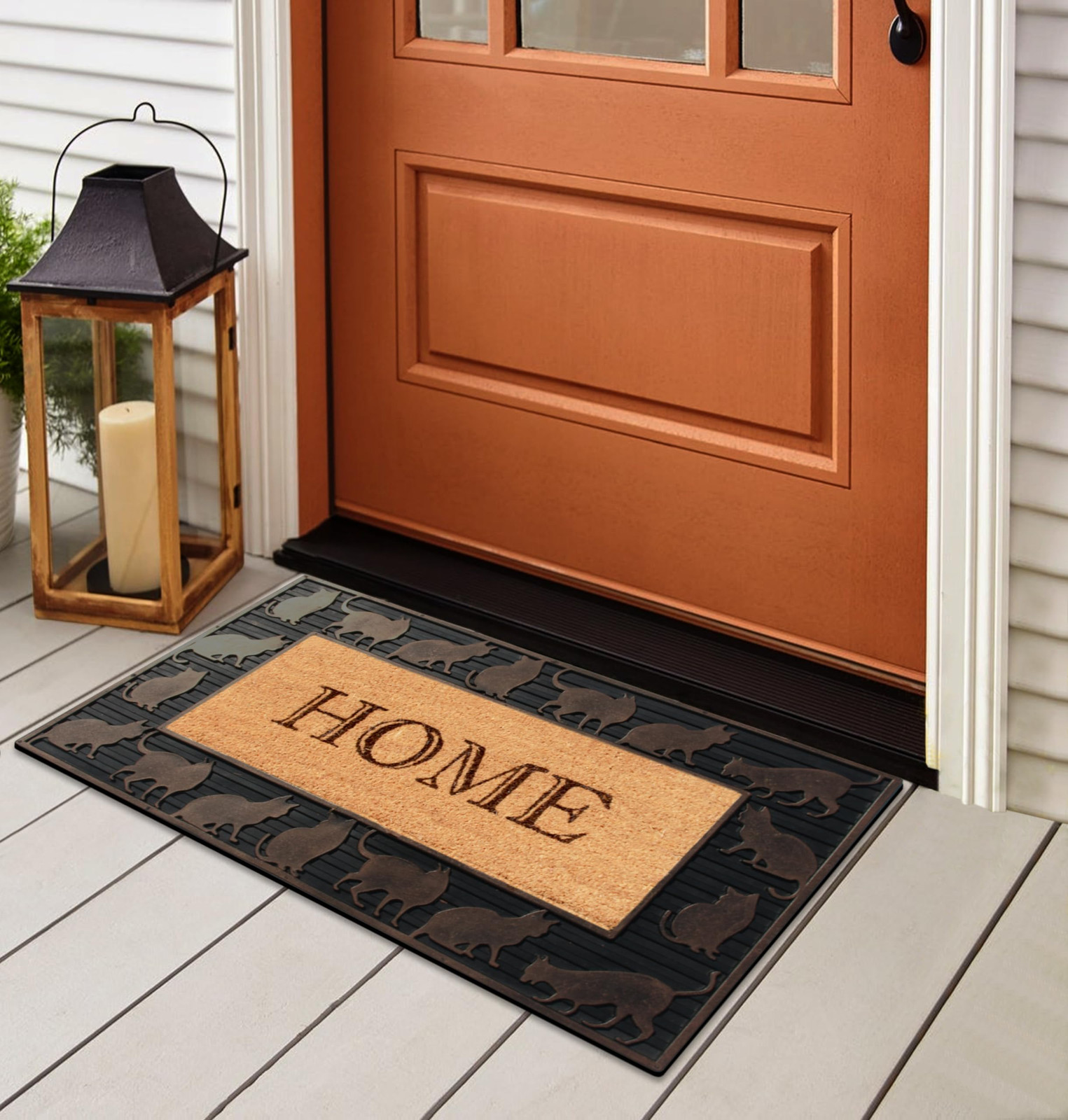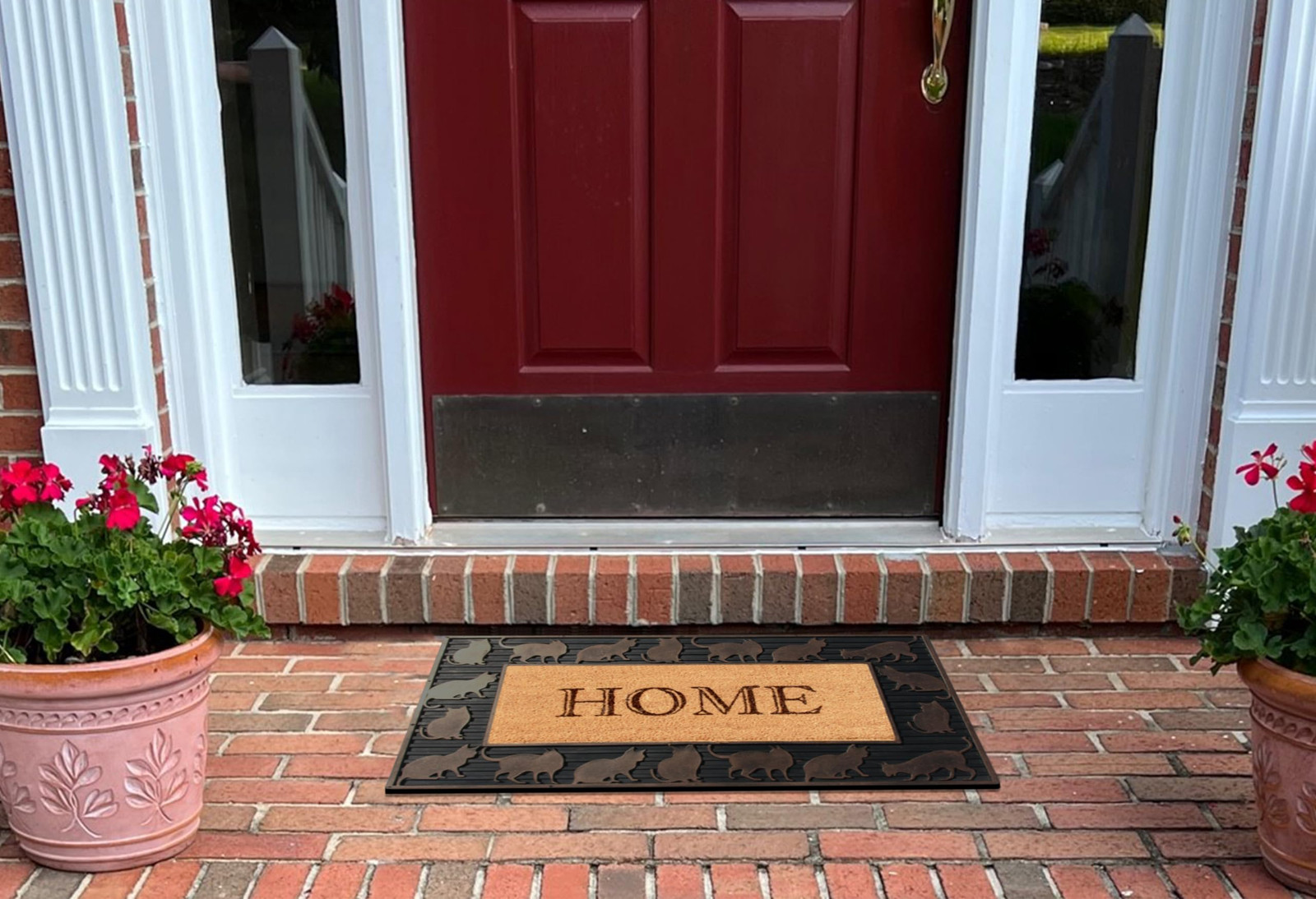 More than a decorative enhancement this rubber & coir molded doormat is made With a heavy rubber backing that anchors it in place while you brush dirt & debris from shoes & boots. The tufted coco-fiber facilitates scrubbing soles clean. Keeps your floor clean when you decorate your entryway with this beautiful doormat, which includes a sturdy rubber backing to help in keep the mat in place & prevent slips. The attractive design of this Coir Door Mat creates a welcoming entrance for your guests & the durable coir material holds up to lots of foot traffic. This Welcome Mat Recommended for outdoor use in covered areas. Vacuum or shake the mat regularly for longer life. NEWLY DEVELOPED RUBBER AND COIR DOOR MAT: This is a completely newly designed door mat, suitable for both single and double doors. The large size door mat is made of Natural coir fiber and high quality rubber. This coir door mat has a large coir area to clean and wipe your shoes which keeps your house clean. These door mats are stronger and more durable lasting thrice as long as regular door mats. Each outdoor rug is QC inspected for 20 quality check points. HEAVY-WEIGHT RUBBER BORDER DOOR MAT: The heavy rubber backing makes sure the doormat in anchored to its place and does not get blown away by wind or tear apart by aggressive wiping. SUPER TOUGH DOOR MAT: constructed with thick coir bristles on the topside with rubber base, the doormat is built tough by nature; its strong bristles create a wiping area and the rubber base adds to the sturdiness. This premium outdoor rug will help stop dirt, debris, moisture and other particles from being tracked into your home and will last at least 3 times longer than regular door mats. PLACE WELCOME MAT BEFORE EVERY EXTERIOR DOOR: Use this welcome mat on a patio, in a garage, laundry room, entryway, and anywhere there is high traffic from outside. Recommended to be used in covered outdoor areas. PERFECT SIZE DOORMAT FOR YOUR LARGE ENTRYWAY: Front doormat measures 18" x 30" and is 0.6" thick to allow your door to easily pass over the mat without getting stuck. This outdoor mat is ideal for both single and double door entrances.