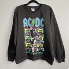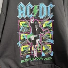 AC/DC black long-sleeve sweatshirt with a colorful "BLOW UP YOUR VIDEO" graphic. Women's size XXL. 100% polyester. Pre-owned, with light pilling, no stains or tears.