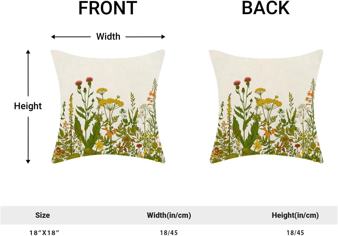 AEIOAE Yellow and Green Pillow Covers 18" x (Pack of 2), Wildflowers 04 Product Details Pattern: Print Material: Linen Color: Wildflowers 04 Product Dimensions: 18"L x 18"W Style: Contemporary Brand: AEIOAE Theme: Plant Shape: Square Number of Items: 2 Special Feature: Fade-Resistant Number of Pieces: 2 Room Type: Living Room, Bedroom Product Care Instructions: Machine Wash Pillow Type: Throw Pillow Occasion: Office, Car, Outdoors, Home Closure Type: Zipper Recommended Uses For Product: Car, Outdoors, Home Manufacturer: AEIOAE Unit Count: 2.0 Count Item Weight: 5 ounces Item model number: BZ24030802 Fabric Type: Linen Batteries required: No Linen 【HIGH QUALITY MATERIAL】2 PC Imported spring flowers throw pillow cover(Not Contains Insert). Made of durable polyester linen material. yellow floral Throw Pillow Case is comfortable to touch and lay on.Not deformed and Not fade. 【DESIGN & SIZE】Soft, hidden zipper allows easy insertion or removal of a cushion, high-end quality and workmanship, All fabric edges of flowers outdoor decor throw pillow cover are sewn with zigzag overlock stitch to prevent fray and ensure durability. Size: 18x18 inch/ 45x45cm. 【WIDE APPLICATIONS】green couch pillow case is perfect for sofa, bed, couch, car, chair and bay window. Add a touch of graceful color to your bedroom or living room. Create stylish comfort on sofa, floor or bed. 【EASY WASHING】: Our yellow and green pillow covers can be hand-washed or machine-washed in cold separately, gently rolls only, please do not bleach, hang to dry or tumble dry, do not iron and it'll look brand new. 【GREAT GIFT】Wild flowers Decorative square throw pillow covers can be used as gift for friends, girlfriend, mother father, give them the most comfortable touch. spring throw cushion case decor have the beautiful color pattern, a great gift idea. AEIOAE is dedicated to help customers improve the quality of life.Letting customers have an artistic house is our long-term products follow the pace of tide, but also have comfort and durability.Create a pleasant, high-quality living environment for you. Product details: Pattern:double-sided printing Closure: Hidden Zip Material: polyester linen Size: 18x18Inches/45cmx45cm Color: Yellow and Green flowers Package included:2 piece Cushion Covers without Pillow insert Features: 1.The spring wildflower plant pillow protectors with zipper are made of high-quality polyester linen and is very durable, environmentally friendly, and very comfortable. 2.This cushion pillowcase cover has an invisible zipper and all seams have been over-locked so it is easy to wash it. 3.Invisible zipper improves appearance and provides easy insertion and removal. Application: Spring Pillow Covers are worth ordering throw pillows covers for your sofa or bed.These yellow floral decorative pillow covers can make a day of your physical and mental fatigue relaxed.green leaves throw pillow cases are suitable for the living room, bed, sofa, couch, and bedroom,office,patio,porch, etc. Warm Tips 1.Please allow 1-3mm error due to manual measurement.Please make sure you do not mind before you bid.Throw pillow cover only, do not include pillow insert. 2.The colors may have different as the difference display, please understand. 3.In order to keep the color fresh, it is better to add salt to water for your first washing. Please feel free to contact us if you have any questions about this will do our best to solve the problem and provide you the best service.