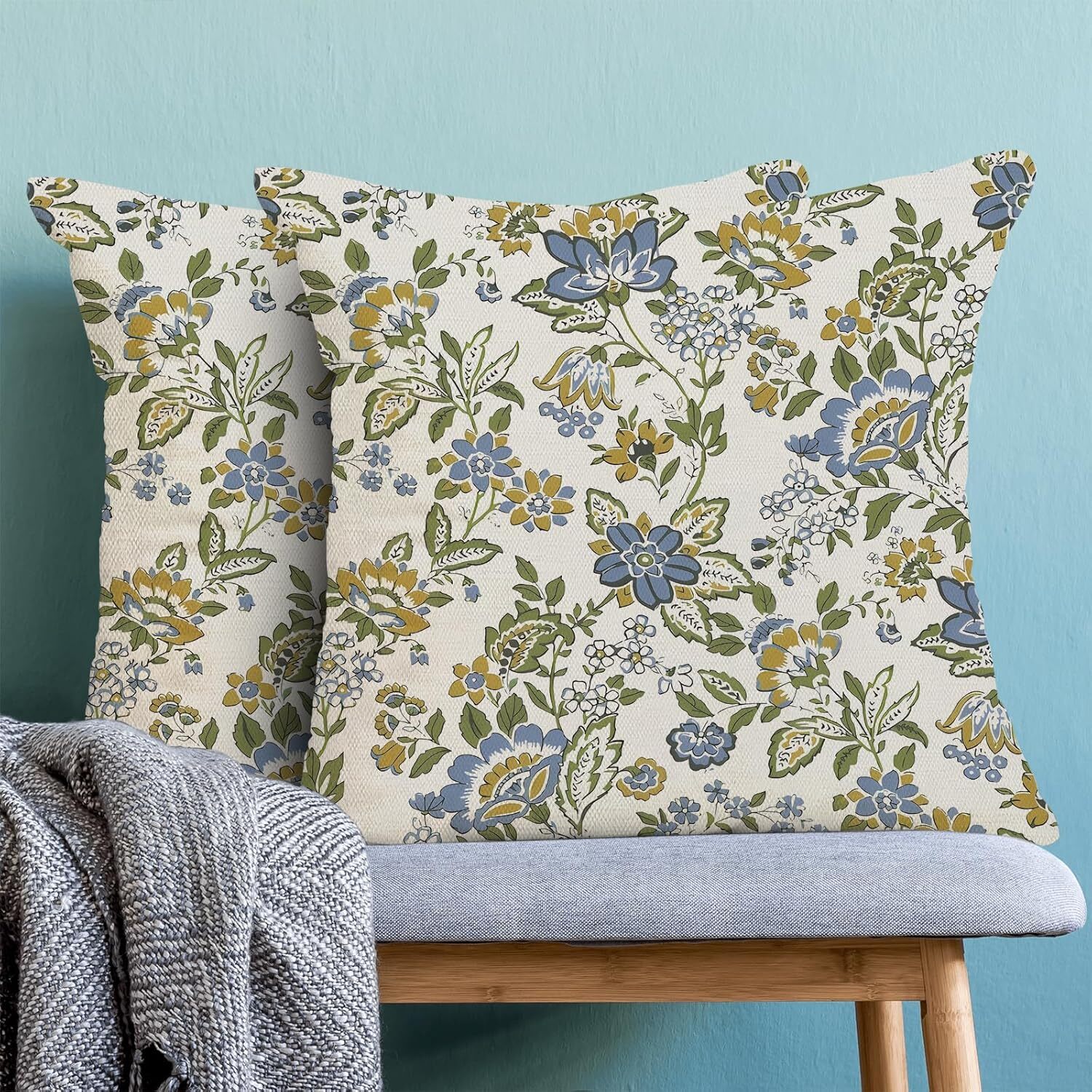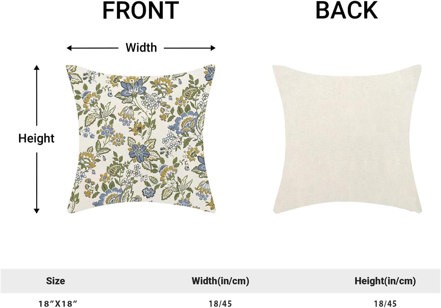 AEIOAE Spring 18" x (Pack of 2), Blue Green Yellow Flower Product Details Pattern: Print Material: Linen Color: Blue Green Yellow Flower Product Dimensions: 18"L x 18"W Style: Modern Brand: AEIOAE Theme: Floral Shape: Square Number of Items: 2 Special Feature: Fade-Resistant Manufacturer: AEIOAE Item Weight: 5 ounces Country of Origin: China Item model number: BZ24102602 Fabric Type: Linen Batteries required: No Linen 【HIGH QUALITY MATERIAL】2 PC Imported spring throw pillow cover(Not Contains Insert). Made of durable polyester linen material. Sage green floral Throw Pillow Case is comfortable to touch and lay on.Not deformed and Not fade. 【DESIGN & SIZE】Soft, hidden zipper allows easy insertion or removal of a cushion, high-end quality and workmanship, All fabric edges of flower outdoor decor throw pillow cover are sewn with zigzag overlock stitch to prevent fray and ensure durability. Size: 18x18 inch/ 45x45cm. 【WIDE APPLICATIONS】Mustard yellow floral couch pillow case is perfect for sofa, bed, couch, car, chair and bay window. Add a touch of graceful color to your bedroom or living room. Create stylish comfort on sofa, floor or bed. 【EASY WASHING】: Our navy blue pillow covers can be hand-washed or machine-washed in cold separately, gently rolls only, please do not bleach, hang to dry or tumble dry, do not iron and it'll look brand new. 【GREAT GIFT】Boho flowers Decorative square throw pillow covers can be used as gift for friends, girlfriend, mother father, give them the most comfortable touch. spring throw cushion case decor have the beautiful color pattern, a great gift idea. AEIOAE is dedicated to help customers improve the quality of life.Letting customers have an artistic house is our long-term products follow the pace of tide, but also have comfort and durability.Create a pleasant, high-quality living environment for you. Product details: Pattern:single-sided printing Closure: Hidden Zip Material: polyester linen Size: 18x18Inches/45cmx45cm Color:Wild flowers Package included:2 piece Cushion Covers without Pillow insert Features: 1.The spring flower decor pillow protectors with zipper are made of high-quality polyester linen and is very durable, environmentally friendly, and very comfortable. 2.This cushion pillowcase cover has an invisible zipper and all seams have been over-locked so it is easy to wash it. 3.Invisible zipper improves appearance and provides easy insertion and removal. Application: Spring Pillow Covers are worth ordering throw pillows covers for your sofa or bed.These navy blue sage green mustard yellow floral decorative pillow covers can make a day of your physical and mental fatigue green leaves throw pillow cases are suitable for the living room, bed, sofa, couch, and bedroom,office,patio,porch, etc. Warm Tips 1.Please allow 1-3mm error due to manual measurement.Please make sure you do not mind before you bid.Throw pillow cover only, do not include pillow insert. 2.The colors may have different as the difference display, please understand. 3.In order to keep the color fresh, it is better to add salt to water for your first washing. Please feel free to contact us if you have any questions about this will do our best to solve the problem and provide you the best service.