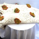 AFGHAN Handmade USA Crochet 70 x 60 inches 6.5" 6-sided put together with flowers Cream with orange and gold flowers with green leaves. New without tags very nice work You Are Enough 2176 $150 6 lbs