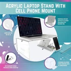 AHANICORN Acrylic Laptop Stand for Desk, Bed, and Coffee Tables with Detachable Phone Stand Compatible with 16 Inch MacBook Pro Product Details Brand: AHANICORN Material: Acrylic Product Dimensions: 10"D x 16"W x 6"H Special Feature: Ergonomic,Ergonomic Design,Portable Style: Detachable,Portable Finish Type: Coffee Assembly Required: No Included Components: Cellphone Holder, Laptop Stand, Storage Bin Item Weight: 4.7 pounds Manufacturer: Doodshop Country of Origin: USA Item model number: AHAAZ100001 Sit, Stand or Lie Down - Multi-use acrylic laptop stand with versatile cellphone holder designed for improving ergonomics while working at desks, coffee tables, standing, and on your bed. Here to There with Ease - With built in handles, an accessory bin, and a detachable cell phone holder, this acrylic laptop riser makes walking over from your desk to your bed with your computer, cellphone, and accessories all at once easy. Lefty and Righty Friendly Design - In addition to being a laptop riser, this stand features a versatile mobile phone bracket that hooks onto either side of the laptop tray and allows for horizontal and vertical orientations. Compatible Up to 16 Inch Laptops - A common complaint was that competing laptop risers were too small for the popular 16 inch Macbook Pro, so we made sure our laptop desk stand is compatible with all laptops up to 16 inches. Our Promise - We are so sure that you will love these acrylic desk accessories that we include a 30-day Risk-Free promise. If you are not fully satisfied with our product, let us know and you will receive a full refund. The Ahanicorn Acrylic Laptop Stand was to make ergonomic laptop use available to you wherever you work, whether at a desk, coffee table, in bed, or standing up. The ergonomic design reduces strain on your neck and eyes, and the notebook riser raises your laptop 6 inches for a better working stylish clear acrylic design with curved corners makes it compatible with any setting, while contributing to safety, style, and sturdiness. Built with handles, you can conveniently transport and store your power source, cellphone, and other accessories with your laptop all at once from room to room all at once. The built-in handles and accessory bin allow you to easily move from desk to coffee table to bed. The ambidextrous mobile phone bracket can be attached to either side of the tray for optimized horizontal experience. The acrylic cellphone stand attachment allows you to hold your phone in portrait or landscape mode, and the phone screen angles upward for more ergonomic stand is specifically compatible with the 16-inch Macbook Pro and any laptop up to 16 inches. The phone stand is compatible with all mobile phones. We're confident you'll love the Ahanicorn Acrylic Laptop Stand. If not, contact us for a full refund within 30 days.