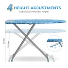 APEXCHASER Ironing Board with Silicon Iron Rest, Heavy-Duty Legs and Heat Resistant Cover, 13x53 inch, Blue 53”L x 13”W Ironing Board: Reduces garment repositioning; ideal for long pants, with a heat-resistant mat for safe iron placement Reinforced Metal Mesh: Stable mesh surface ensures even heat for faster, smoother ironing without fabric sticking Adjustable Height: Four height options (30-36 inches) reduce back strain, with secure slot locks for stability 3-Layer Removable Cover: Features 5mm polyester padding, eco-foam, and premium cotton for a heat-resistant, scorch-proof surface; easy to wash Heavy-Duty & Foldable: Sturdy steel legs and foldable frame provide stability and compact storage Shipping We offer FREE shipping on all orders! We ship within few business days of payment, usually sooner. We use a selection of shipping services such as UPS, FedEx, USPS etc. We only ship to the lower 48 states, no APO/FPO addresses or PO Boxes allowed. Local pickups and combined shipping options are not provided at this time. Return You can return a product for up to 30 days from the date you purchased it. Any product you return must be in the same condition you received it and in the original packaging. Please keep the receipt. - For all returned products, buyers MUST contact us for the returning address. - 100% Satisfaction Guarantee; If you are not satisfied with the product as your purchased with any reason, please contact us for a return instruction within 30 days for a refund. Payment We accept payment by any of the following methods: PayPal Please pay as soon as possible after winning an auction, as that will allow us to post your item to you sooner! Feedback Customer satisfaction is very important to us. If you have any problem with your order, please contact us and we will do our best to make you satisfied. Contact Us If you have any queries, please contact us via ebay. We usually respond within 24 hours on weekdays. Please visit our eBay store to check out other items for sale! Thank you for shopping at our store.