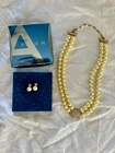 This lovely Avon necklace and earring set from 2005 is the perfect addition to any jewelry collection. The ivory color and pearl design exude elegance and beauty, while the silver metal adds a touch of sophistication. The oval pendant shape and amulet type make for a unique and charming look, and the clip-on earrings ensure comfortable and secure wear. The set is branded by Avon and features a lovely pearl and silver color scheme. It is vintage and has been well-maintained to ensure its longevity. This necklace and earring set is perfect for any occasion, whether it be a formal event or a casual day out. See all photos!!