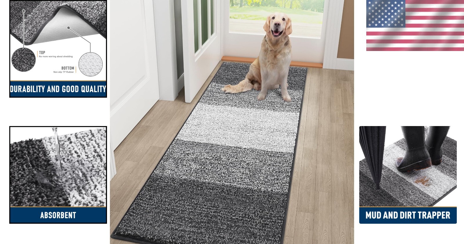 This mat is a game-changer for keeping floors clean! The ultra-absorbent material soaks up wet paws and muddy prints in seconds, while the non-slip backing stays perfectly in place. The low-profile design looks sleek and never gets caught under doors. Super easy to shake out or hose down—super durable after months of use. My entryway has never been cleaner or more stylish with those neat stripes! Dogs track in way less dirt now. Worth every penny for pet owners!