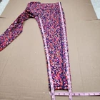 Ideology Compression Side-Pocket Cropped Leggings Abstract Patern - Size M, approx. measurements in pics - Side pockets (thigh) - blue pink orange - 44% Recycled Polyester, 43% polyester, 13% spandex - Pre-owned, clean, ready to wear.