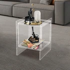 $ 17.04Clear Acrylic Side Table with 2 Tires Modern Living Room or Bedside Coffee Table
