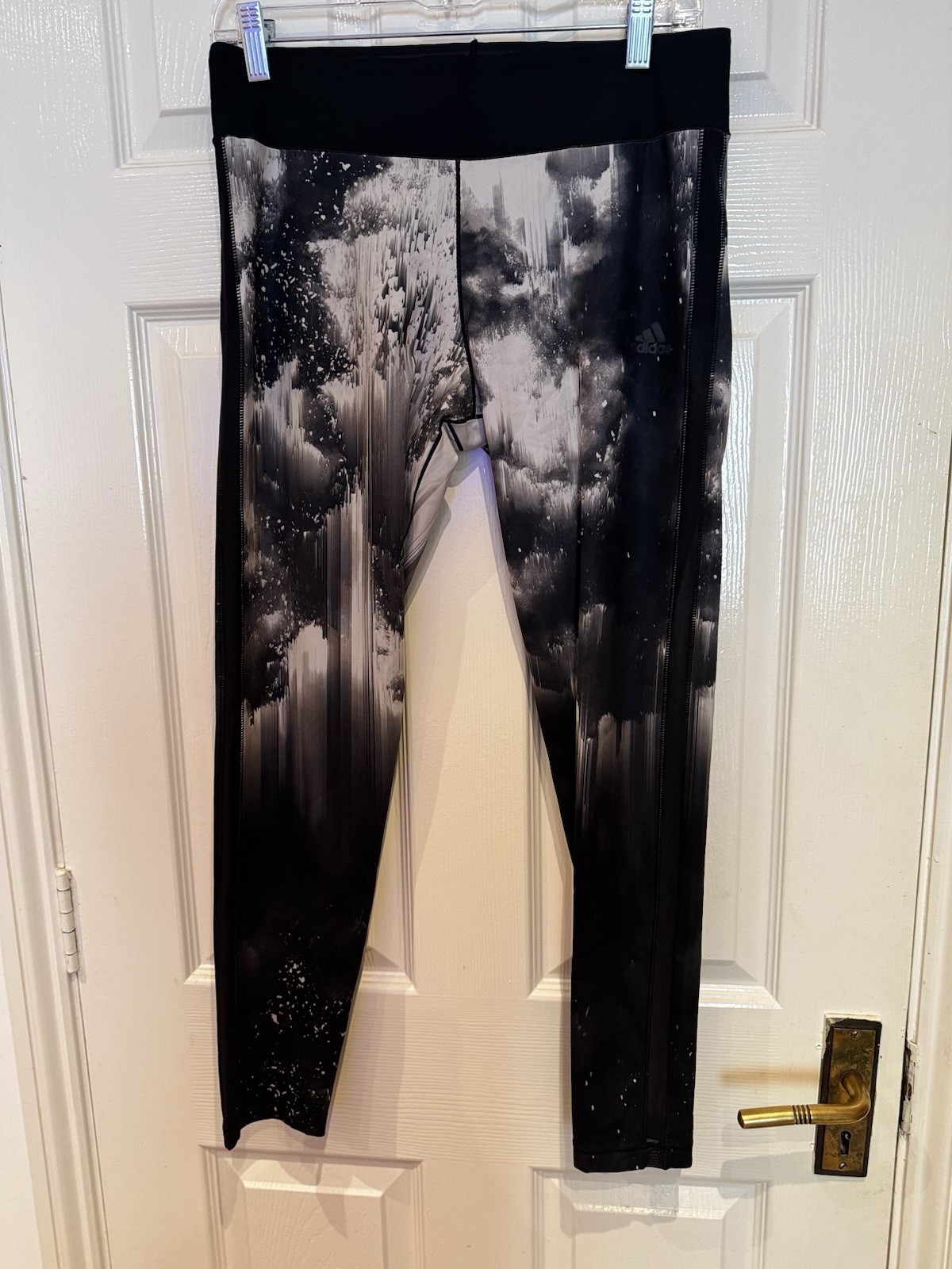 Elevate your workout wardrobe with these Adidas Black & White Climalite Training Leggings, tailored for women seeking both style and functionality. The leggings are designed in a size 16-18, ensuring a comfortable fit for those with a taste for regular sizing. Crafted from recycled polyester, they are as eco-conscious as they are durable. The fabric type is optimized for gym enthusiasts, providing an elastic waist for a secure fit during high-intensity activities. Adorned with the iconic Adidas logo, these leggings strike a perfect balance between casual and sporty. The black and white combination of colours offers versatility, making them a staple for any fitness regime. Whether you're hitting the gym or engaging in any form of physical activity, these leggings are equipped to keep up with your performance needs without compromising on style. These leggings have been worn and are in excellent condition.