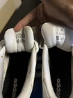 Elevate your sneaker game with these classic white Adidas sneakers. Designed with a low top shoe shaft style and lace-up closure, these sneakers are perfect for both men and women. With a US shoe size of 8.5, these sneakers are a must-have for any sneakerhead. Featuring a standard shoe width and Adidas New product line, these sneakers are perfect for various activities such as gym and training, walking, tennis, cycling, boxing, cross-training, driving, CrossFit, and basketball. The timeless design of these sneakers is perfect for anyone looking for a classic and stylish sneaker. Get your hands on these sneakers today and step up your shoe game.
