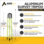AdirPro Prism Pole Tripod – Aluminum Range Pole Tripod – Use for Survey Pole, Rover Rod, GPS Pole – GNSS RTK Rod Stand - Survey Equipment for Total Station Surveying (Fluorescent Green) Product information Color: Green Brand AdirPro Color Green Compatible Devices iPhone 6 Special Feature Telescopic, Adjustable Material Aluminum Item Weight 4 Pounds Weight Limit 6 Pounds Maximum Height 6 Feet Tripod Head Type Ball Heads Minimum Height 14 Inches Package Dimensions 46 x 6.45 x 6.25 inches Item Weight 4 pounds Item model number 760-01 Manufacturer AdirPro Country of Origin China ✔️ PROFESSIONAL SURVEYING TRIPOD: AdirPro Surveying Tripod provides engineers and surveyors a helping hand in setting up a free-standing GPS antenna pole or prism pole quickly and easily without the need for additional crew. ✔️ SAVE TIME, INCREASE ACCURACY: Equipped with Top-Loading Thumb Screw Head, this Tripod allows for quick set up and removal of prism poles with a grip and slide control. It can accommodate 1” to 1.25” and 1.5” diameter poles. ✔️ EXTENDABLE LEGS UP TO 6FT: Our Prism Pole Tripod features telescoping legs that adjust at a height of 3.5-6ft. Its legs lock into place by the quick-release clamp locks while the twist knob lock secures the prism pole in place. ✔️ REPLACEABLE POINTED FEET: Each AdirPro Prism Pole Tripod is equipped with replaceable pointed feet that assure your placement, even on the most rugged terrain, is secure. Your package includes a convenient Tripod Bag. ✔️ HEAVY-DUTY CONSTRUCTION: Our Surveying Tripods are made with premium aluminum and steel, which ensure longevity and retained quality even after frequent use - convenient survey equipment that is not only reliable but is also cost-effective. Shipping We offer FREE shipping on all orders! We ship within Three business days of payment, usually sooner. We use a selection of shipping services such as UPS, FedEx, USPS etc. We only ship to the lower 48 states, no APO/FPO addresses or PO Boxes allowed. Local pickups and combined shipping options are not provided at this time. Return You can return a product for up to 30 days from the date you purchased it. Any product you return must be in the same condition you received it and in the original packaging. Please keep the receipt. Payment We accept payment by any of the following methods: PayPal Please pay as soon as possible after winning an auction, as that will allow us to post your item to you sooner! Feedback Customer satisfaction is very important to us. If you have any problem with your order, please contact us and we will do our best to make you satisfied. Contact Us If you have any queries, please contact us via ebay. We usually respond within 24 hours on weekdays. Please visit our eBay store to check out other items for sale! Thank you for shopping at our store.