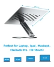 Aviation-Grade Aluminum Alloy: Built with high-quality aviation-grade aluminum alloy, this ergonomic laptop stand ensures exceptional stability, durability, and a modern look. Perfect for office scenes, home setups, and gaming environments, it securely supports laptops from 10 to 16 inches, blending seamlessly into any desk layout Ergonomic Adjustable Height: Elevate your laptop to an ergonomic viewing level with adjustable height settings. This adjustable height laptop stand reduces neck and eye strain, enhances posture, and improves productivity during extended work, gaming, or study sessions, making it an ideal macbook stand for desk setups 360-Degree Rotating Base: The laptop stands 360-degree rotating base offers unparalleled flexibility, allowing effortless screen sharing, perfect angle adjustments, and smooth collaboration during meetings or presentations. Ideal for professional office environments, home use, and gaming setups Portable and Foldable Design: Designed for portability, this folding laptop holder is lightweight and compact, folding flat for easy storage or transport. Ideal for business professionals, designers, students, and freelancers who need a laptop portable stand on the go, ensuring convenience without compromising functionality Enhanced Cooling with Mesh Design: Keep your laptop cool during long work or gaming sessions with the integrated mesh ventilation panel. This innovative cooling feature ensures consistent airflow, preventing overheating and maintaining peak device performance Tips: For safe operation, always remove your laptop or tablet before adjusting the height or angle of the stand