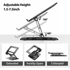 Features: 1.Foldable & Portable: Laptop stand for desk can fully Foldable, it is easily to used, carry. Suitable for working at home, office and outdoor, make typing more easier. 2.360° Rotation: Featuring a 360° rotatable Two-axis connecting with the base, makes the 360° rotation more flexible, computer stand allows you to swivel your laptop to any angle. 3.Stable & Durable: Adjustable laptop stand is made of Carbon steel, thus gives the stand a more stable performance, Anti-skid silicone can protects your laptop from sliding. Laptop Stand 360° Rotating Bracket Foldable Aluminum Laptop Desk Stand Adjustable Laptop Riser Holder Ergonomic Computer Stand for Laptop Features: 1. Foldable & Portable : Laptop stand for desk can fully Foldable, it is easily to used, carry. Suitable for working at home, office and outdoor, make typing more easier. 2. 360° Rotation : Featuring a 360° rotatable Two-axis connecting with the base, makes the 360° rotation more flexible, computer stand allows you to swivel your laptop to any angle. 3. Stable & Durable : Adjustable laptop stand is made of Carbon steel, thus gives the stand a more stable performance, Anti-skid silicone can protects your laptop from sliding. 4. Ergonomic Design : You can free adjust laptop stand height and angle to a perfect eye level and helps to reduce shoulder and neck pain. Which ensures you in a comfortable position no matter sitting down or standing up. 5. Heat Dissipation : The laptop riser rotary plate adopts an open hollow design which can enhance the air circulation to achieve the best heat dissipation effect, solve the concern of the weakened heat dissipation performance due to your long-playing use of computer. 6. Wide Compatibility : Laptop stand for MacBook Air/Pro Dell XPS HP Lenovo Acer Chromebook Huawei and more All 10"- 17.3" laptops and notebooks. Laptop Riser made of solid aluminum alloy, which is stable in type and sturdy. Rugged enough to support a 11 lbs(5kg) laptop. Multi-angle and height adjustable Laptop stand, Elevates your laptop to an optimal viewing angle and best ergonomics. Non-slip rubber pad design, prevents the laptop holder from sliding and protects your computer from scratches. Laptop stand compatibility with MacBook 12 inch/ 13 inch, MacBook Air 13 inch, MacBook Pro 13 inch / 14 inch/ 16 inch, Dell XPS HP Lenovo Acer Chromebook and more 10 inches, 11 inches, 12 inches, 13 inches, 13.3 inches, 14 inches, 15 inches, 15.4 inches, 15.6 inches ,17.3 inches laptops etc. Specifications: Type: Laptop Stand Material: Aluminum Alloy + Silicone Package Dimensions:260*225*45mm Suitable for laptop size: 10-17.3 inch weight capacity: 6kg Package Includes: 1 x Laptop Stand Note: 1.The colors may be a little difference for the different monitor display. 2.Please allow 0.5-1 inch difference due to manual measurement.(1inch=2.54cm) Item Specifics Brand Unbranded Type Desk Stand Features Foldable Adjustable Stand 360° Rotation Compatible Brand For Lenovo For ASUS For Acer For HP For Dell For Apple Universal Compatible Laptop Size 10"- 17.3" Compatible Product Line Universal Material Aluminium Item Height 45mm Item Length 260mm Item Width 225mm Model Adjustable Laptop Stand Manufacturer Warranty 1 Year Payment You can checkout and pay immediately after the auction ends or you complete the purchases. If you need an eBay invoice sent to you by Email, please contact us. Shipping 2.We will ship out your order within 2 business days after receiving your verified payment (Excluding Weekends and Public Holidays)! Returns 2.Please Kindly contact us for the RMA No.and address before returning the item back. Contact Us 1. Please contact us if you are not satisfied with the item after receive it. Just contact us using the " Ask the seller a question " link on eBay.
