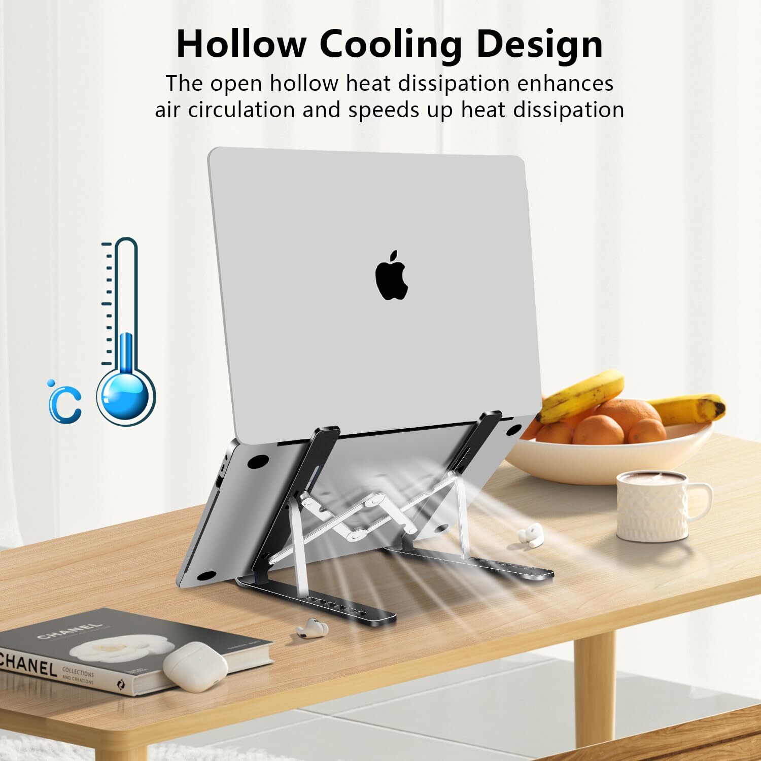 Adjustable and Ergonomic - The laptop stand has 7 adjustable heights There will always be an angle for your comfort, helps to reduce eye strain, shoulder pain, back pain. lets you fix posture and easy typing Exquisite Workmanship Computer Stand for Laptop - Machined from anodized aluminum alloy, with sand blasted and brushed processes. The rubber on the holder hands sticks tightly and ensure your laptop stable on the stand. Rubber pads to protect your device from scratching or sliding. Foldable and Lightweight - Creative portable foldable design, the laptop stand can be folded to the size of 9.12*1.10 inches, it weighs only 0.6 lbs and come with a portable storage bag to make it easy to carry and use at the home, office, or other places Wide Compatibility - Suitable for laptops and tablets within 17 inches. It also fits for phone, tablets, kindle, books from 6 inches to 12.9 inches Ventilation and Cooling - The open aluminum design provides good ventilation and airflow to prevent your laptop from overheating. If you need to store your laptop, it can be folded flat to create extra space on your desk and keep it neat and organized.
