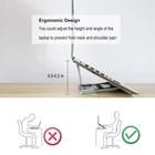 【 Keep Your Laptop Cool 】HOLLOW design, which increases airflow. Also, Aluminum metal helps CONDUCT and DISSIPATE the heat. [Adjustable, clever ergonomic design] Our laptop stand can reach 45 degrees of adjustment, rising to a height of 5.9''. Neck pain, shoulder pain gone forever!!! [Folding mode, no installation required 】 Wide range of use. Meet your needs in different situations. [Light and strong] aircraft grade aluminum alloy with brushed and anodized surface. Weighs only 0.85 pounds but can support up to 40 pounds. Curved corners and rubber on each side prevent scratching and shaking 【 Portable, 3/16'' Thin 】UNIQUE folding design, which can be folded to a THIN size[3/16'']!