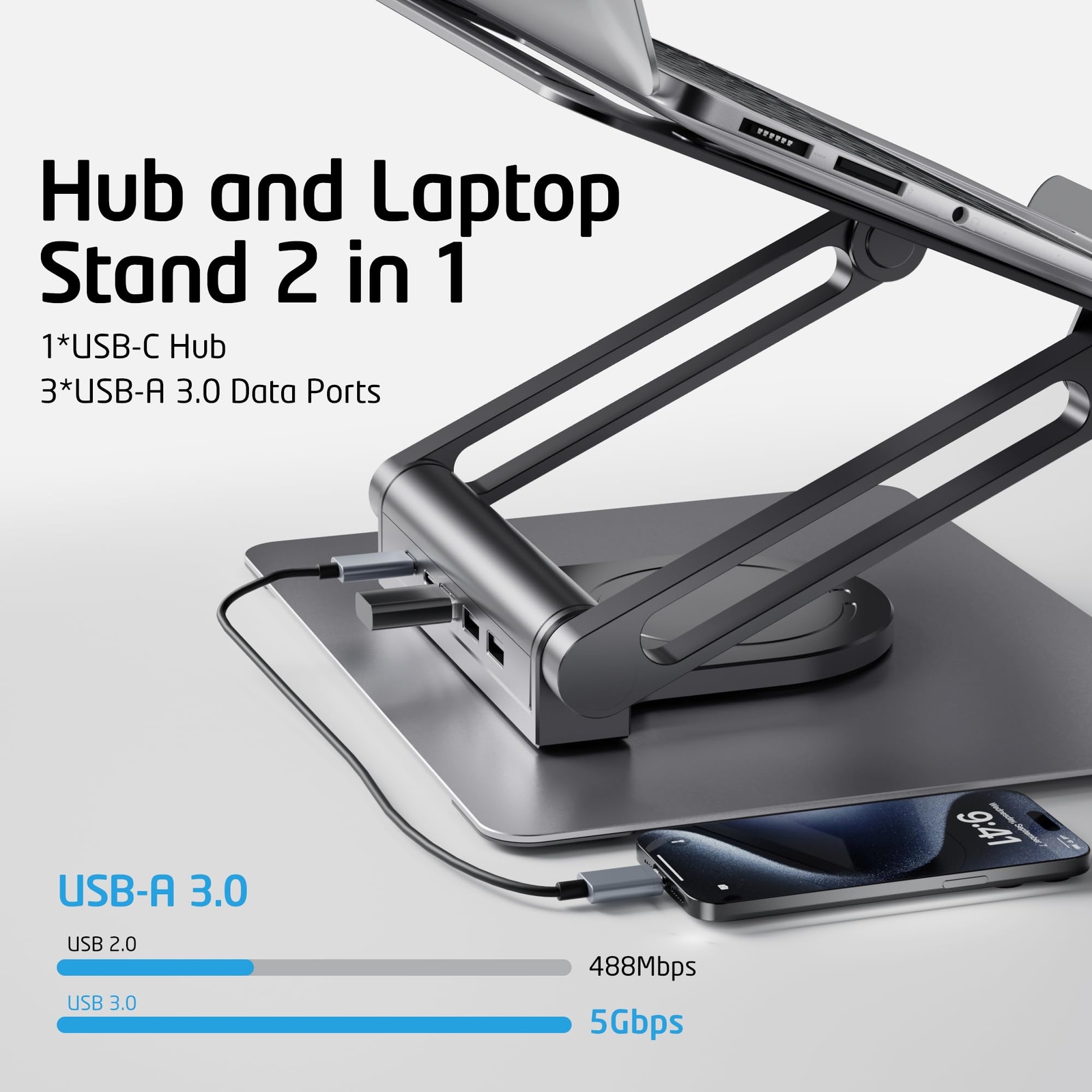 Exclusive Offers Await! Welcome to our stores! We promise you'll be satisfied. Laptop Stand with USB-C and USB-A, Adjustable Aluminum Laptop Riser for Desk with 360° Rotating Base, Foldable Ergonomic Computer Stand Compatible with 7"-17" Laptops, Space Grey Item Details Product Features [Laptop Stand with USB] This laptop stand has additional USB C and USB 3.0 Ports, It can provide extra rich interfaces for your cell phone, keyboard, mouse, U disk and other devices when using computer, no need to add extra hub. just go out with a computer stand! [360°Rotating Base] This laptop riser features a 360° rotatable shaft that attaches to the base, providing you with great flexibility to rotate your laptop to any angle and easily share the screen with someone next to your desk or in another location. It is the best choice when you are working and sharing information. [Adjustable and Portable] This computer stand has two high-strength pivot system, you can adjust the angle according to your preference at any time (Note: In order to ensure stability, when adjusting the height, you need to use some force to rotate), you can also fold up the laptop stand, it is easy to put into the bag, you can take it with you when traveling and business trips! [Sturdy & Ergonomic]The laptop stand is made of heavy aluminum alloy, the overall structure is solid and can withstand up to 19LB of weight. The silicone pads on the computer stand better protect the computer from bumps or scratches. The stand can be adjusted to a comfortable height and angle according to the customer's usage habits, which helps to improve posture, reduce neck fatigue, say goodbye to neck pain, and make working and typing easier. [Compatibility & Heat Dissipation] The laptop stand has an enlarged and thickened panel, compatible with any brand of 7-17 inch laptops, it is also suitable for cell phones, tablets, kindle and books. The laptop stand panel is designed with hollowed out cooling area, which can help the computer to be better ventilated and ensure good heat dissipation. Payment Information ⦿ All payments are handled securely through eBay. ⦿ We accept PayPal and all major credit cards. ⦿ Payment must be completed immediately after purchase. ⦿ If there are any issues with the payment, please contact our support team for assistance. Shipping Details ⦿ We only ship to the address provided at checkout. Please verify your address before completing your purchase. ⦿ Orders are processed within 1 business day (excluding weekends and holidays). ⦿ Delivery usually takes 3-5 business days. ⦿ We use trusted shipping services such as UPS, FedEx, and USPS. ⦿ Shipping is available only within the contiguous United States. We do not ship to Alaska, Hawaii, Puerto Rico, or PO Boxes. ⦿ If there are any shipping delays, please contact us for support. Return Policy ⦿ We offer a 30-day return policy for your peace of mind. ⦿ If you are not satisfied with your purchase, you can return it within 30 days for a full refund. ⦿ Please contact us to obtain the return address before sending back any items. ⦿ Returns must be in their original condition and packaging.