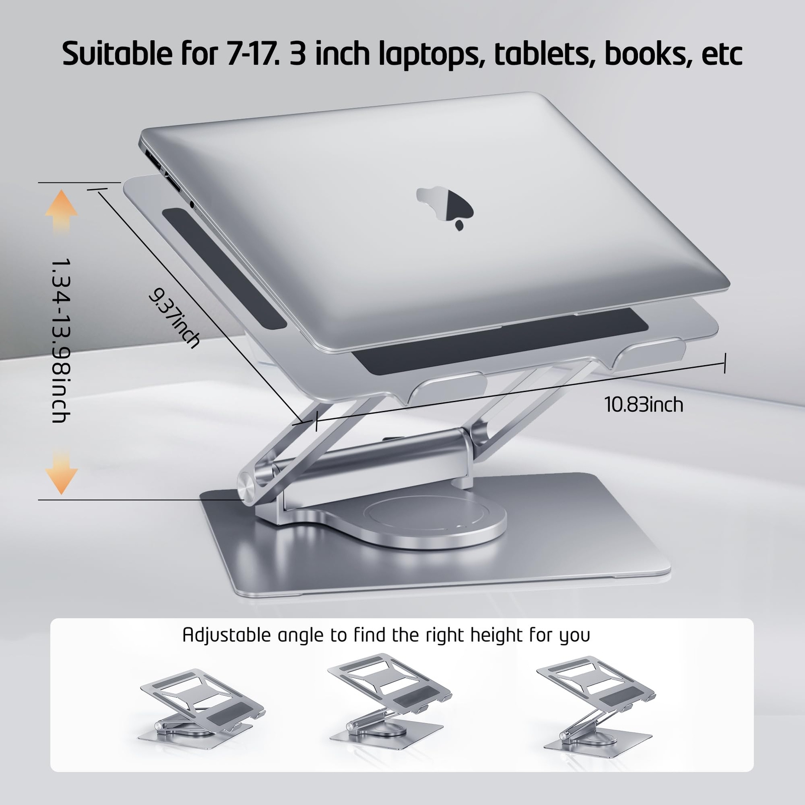 Fast and Free Shipping on All Orders! Come to our stores, where your satisfaction is guaranteed. Laptop Stand with USB-C and USB-A, Adjustable Aluminum Laptop Riser for Desk with 360° Rotating Base, Foldable Ergonomic Computer Stand Compatible with 7"-17" Laptops, Silver Product Images Item Description Key Features [Laptop Stand with USB] This laptop stand has additional USB C and USB 3.0 Ports, It can provide extra rich interfaces for your cell phone, keyboard, mouse, U disk and other devices when using computer, no need to add extra hub. just go out with a computer stand! [360°Rotating Base] This laptop riser features a 360° rotatable shaft that attaches to the base, providing you with great flexibility to rotate your laptop to any angle and easily share the screen with someone next to your desk or in another location. It is the choice when you are working and sharing information. [Adjustable and Portable] This computer stand has two high-strength pivot system, you can adjust the angle according to your preference at any time (Note: In order to ensure stability, when adjusting the height, you need to use some force to rotate), you can also fold up the laptop stand, it is easy to put into the bag, you can take it with you when traveling and business trips! [Sturdy & Ergonomic]The laptop stand is made of heavy aluminum alloy, the overall structure is solid and can withstand up to 19LB of weight. The silicone pads on the computer stand protect the computer from bumps or scratches. The stand can be adjusted to a comfortable height and angle according to the customer's usage habits, which helps to improve posture, reduce neck fatigue, say goodbye to neck pain, and make working and typing easier. [Compatibility & Heat Dissipation] The laptop stand has an enlarged and thickened panel, compatible with any brand of 7-17 inch laptops, it is also suitable for cell phones, tablets, kindle and books. The laptop stand panel is designed with hollowed out cooling area, which can help the computer to be ventilated and ensure good heat dissipation. Thank you for shopping with us! Contact Us 📧 If you have any questions, feel free to reach out via the eBay messaging system. We respond to all inquiries within 24 hours. Payment Methods 💳 We accept PayPal, credit cards, and other payment methods supported by eBay. Please ensure your payment information is current to avoid delays. Shipping Information We ship to the address on your eBay account. Please confirm your address before completing the purchase. Delivery times are typically 3-5 business days. If there are delays, please allow an extra 1-2 business days due to postal service issues or technical problems. We use trusted shipping services like UPS, FedEx, and USPS. Shipping is available to the contiguous 48 states only. We do not ship to Alaska, Hawaii, US territories, APO/FPO addresses, or PO Boxes. Local pickups are not available. For any issues with delivery, please contact us promptly. Customer Feedback 🌟 We value your feedback and strive to earn your trust. If you're not satisfied with your purchase, please contact us and we'll work to resolve the issue. Return Policy - We offer a 30-day money-back guarantee. - If the item is defective or you are not satisfied, contact us for a replacement or refund. - For all returned products, buyers MUST contact us for the returning address.