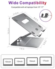 【Ergonomic Based on You】laptop stand comes with a variety of adjustable height and angle. This computer stand with ergonomic design can help you set up with the top of the screen at eye level and can prevent muscle fatigue and tension,eye strain and stay back pain-free, leading to fewer missed workdays and more productivity during work times. Laptop holder gives more flexibility in setting your workspace up to suit your requirements. Height: 1.1~10.2 inches, Angle: 0~180° 【Sturdy & Stable】Made of whole premium aluminum alloy laptop stand designed as modern feel Z-type, provides high quality stable to the stand. The computer stand is strong sturdy supports up to 20 lbs on top.Non-slip rubber on the laptop holder ensure your laptop hold in place and protective hooks prevent from sliding around. Moden feel and all protect your laptop. 【Ventilated Cooling & Foldable】Laptop stand with aluminum alloy material on top can absorb and discharge heat at ease. What's more laptop riser has heat vent design increase natural airflow help you laptop cooldown, hence running at optimal performance longer, and even prolonging the life of your laptop. This computer stand can easily fold and fit into your bag and laptop case. 【Wide Compatibility & Multi - Use】laptop stand for desk is compatible with all laptops from 10"-17". Suitable for MacBook, MacBook Air, Macbook Pro, Google Pixelbook, Dell XPS, HP, ASUS, Lenovo, Acer, Chromebook, and more notebook and Pad models. Multiple-use laptop stand in many situations like office, meeting room, coffee shop, library, kitchen and music playing house to hold the laptops. 【What You Get】macbook stand you purchase can get - Laptop stand *1, Adhesive tape*1, guarantee customer service. computer stand service: 1-year warranty for free replacement, 7/24 service for our valued customer as a satisfactory result. Any questions, please feel free to contact us. We greatly pleasure in helping you at any time.