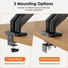 [Compatible with Desk & Monitor]single monitor mount arm can fit 13 to 32 Inch screen and hold 17.6lbs with 75x75/100x100 VESA pattern, maximum compatibility with fixed desktop thickness from 0.39 inches to 2.36/3.96 inches to fit your monitors and desks. The monitor stand expands the range of vision and improves sitting posture,and you can stand or sit at work, increasing productivity. [Multi-directional Flexible Adjustment]By Adjusting the tension of the spring to smoothly extend the display 19.3 inches outward, and the stand arm can be raised 16.3 inches above the desktop to customize your viewing angle,while supporting screen rotates 360°for landscape or portrait orientation, swivels 180°to share your monitor, and tilts up 90°/down 45° for better viewing. (Tilt:-45°/+90°, Swivel:180°, Rotate:360°) [Maximize Desktop Space]Compared to a monitor stand with a base, our stand frees up more than 80% of the desktop space for office supplies, creating a more comfortable and tidy working environment. The monitor arm provides two desktop mounting methods: C-Clamp and hole seat, you can choose the installation method according to your own use. Both ways can be stably and securely fixed to the desktop regardless of whether the desktop has holes.