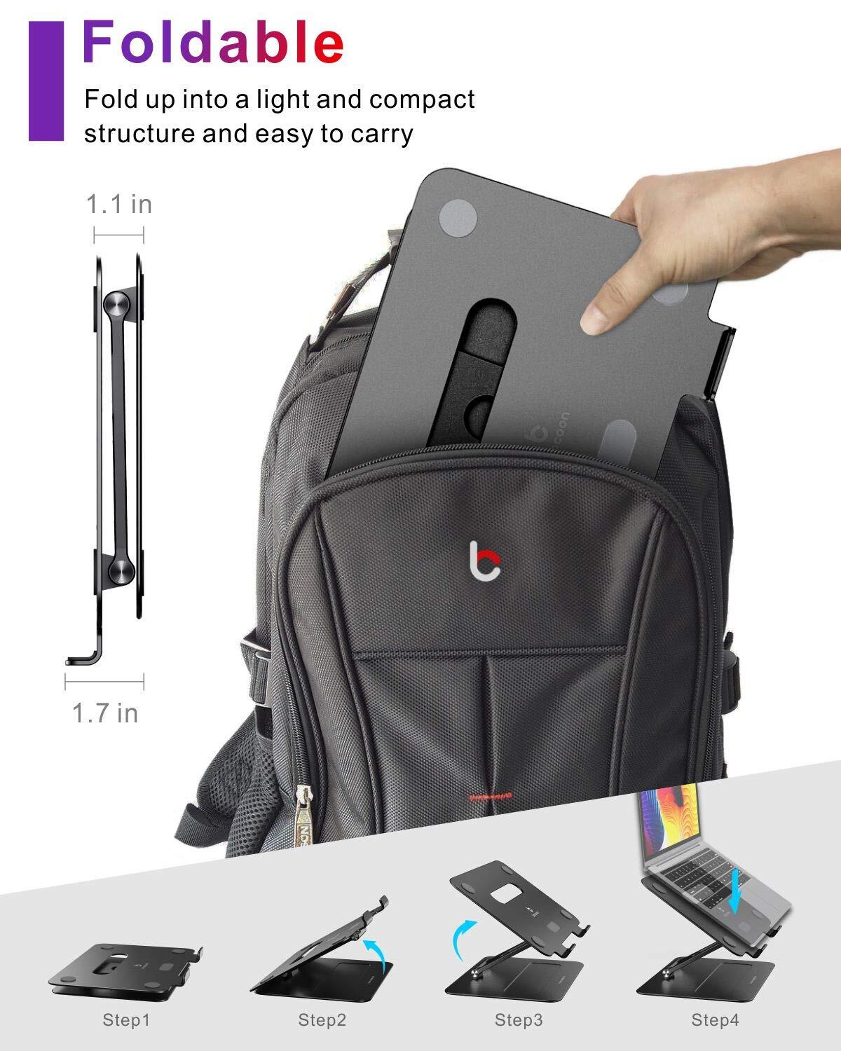 brocoon Laptop Stand, Adjustable Laptop MacBook Stand for Desk, Ergonomic Aluminum Computer Stand with Heat-Vent, Laptop Riser Compatible for 10-17" Laptops 【Ergonomic Based on You】Brocoon laptop stand comes with a variety of adjustable height and angle. This computer stand with ergonomic design can help you set up with the top of the screen at eye level and can prevent muscle fatigue and tension,eye strain and stay back pain-free, leading to fewer missed workdays and more productivity during work times. Laptop holder gives more flexibility in setting your workspace up to suit your requirements. Height: 1.1~10.2 inches, Angle: 0~180° 【Sturdy & Stable】Made of whole aluminum alloy laptop stand designed as modern feel Z-, provides high quality stable to the stand. The computer stand is strong sturdy supports up to 20 lbs on top.Non-slip rubber on the laptop holder ensure your laptop hold in place and protective hooks prevent from sliding around. Moden feel and all protect your laptop. 【Ventilated Cooling & Foldable】Laptop stand with aluminum alloy material on top can absorb and discharge heat at ease. What's more laptop riser has heat vent design increase natural airflow help you laptop cooldown, hence running at optimal performance longer, and even prolonging the life of your laptop. This computer stand can easily fold and fit into your bag and laptop case. 【Wide Compatibility & Multi - Use】brocoon laptop holder is compatible with all laptops from 10"-17". Suitable for MacBook, MacBook Air, Macbook Pro, Google Pixelbook, Dell XPS, HP, ASUS, Lenovo, Acer, Chromebook, and more notebook and Pad models. Multiple-use laptop stand in many situations like office, meeting room, coffee 【What You Get】brocoon laptop riser you purchase can get - Laptop stand *1, Adhesive tape*1, Brocoon guarantee customer service. Brocoon computer stand service: 1-year warranty for free replacement, 7/24 service for our valued customer as a satisfactory result. Any questions, please feel free to contact us. We greatly pleasure in helping you at any time. Brocoon adjustable laptop stand with ergonomic design to upgrade your life quality, in order to help you far away from back pain crisis. Heavy-duty material Laptop riser is made of the whole aluminum alloy, base on extremely stable and sturdy design for great user experience Wide Compatibility This laptop holder is wide compatible with all laptop models and sizes from 10" - 17", hold up to 40lbs, compatible with MacBook, MacBook Air, Macbook Pro, Dell XPS, HP, ASUS, Lenovo, Acer, Chromebook and more. Specifications: Model number:BLSB-100 Color: Dark Black Product size: 11.57 * 8.58 * 17.71 inches Shipping We offer FREE shipping on all orders! We ship within Three business days of payment, usually sooner. We use a selection of shipping services such as UPS, FedEx, USPS etc. We only ship to the lower 48 states, no APO/FPO addresses or PO Boxes allowed. Local pickups and combined shipping options are not provided at this time. International buyers – please note: Import duties, taxes, and charges aren't included in the item price or postage cost. These charges are the buyer's responsibility. Please check with your country's customs office to determine what these additional costs will be prior to bidding or buying. Order Cancellation Policy * Order Cancellation Policy ** You can return a product for up to 30 days from the date you purchased it. 1. The seller reserves the right to cancel the special case only due to eBay cancellation fee. 2. The decision of seller is the final. 3. The seller will respond to the cancellation request within 2 business days. Please wait for the result of cancellation. 4. In case the cancellation is not completed by some reasons, the buyer can follow the options below to get the refund. 4.1 The buyer can reject the item when it arrives. 4.2 The buyer can send the item back to the seller within 30 days If the buyer receives item (USA Shipment ONLY). The seller will provide the FREE return label to the buyer when the buyer opens " Return Item" case on eBay by using the reason as "Change my mind" ONLY. 5. When buyer has placed the order. The order will be processed and completed by automatic warehouse system within 5 minutes. In case that buyer sends the cancellation request after 5 minutes of placing the order, the request will be rejected. **Sending direct message to cancel the order is not allowed for every case.* Return Policy - If buyer would like to return the items for refund or replacement, please CONTACT SELLER to receive the free return label from seller. The refund or replacement will be processed with the tracking number of return label which is provided by seller only. The other ways of return which are not approved by seller will not be processed for the refund or replacement. Return You can return a product for up to 30 days from the date you purchased it. Any product you return must be in the same condition you received it and in the original packaging. Please keep the receipt. Payment We accept payment by any of the following methods: eBay Payments Please pay as soon as possible after winning an auction, as that will allow us to post your item to you sooner! Feedback Customer satisfaction is very important to us. If you have any problem with your order, please contact us and we will do our best to make you satisfied. Contact Us If you have any queries, please contact us via ebay. We usually respond within 24 hours on weekdays. Please visit our eBay store to check out other items for sale! Thank you for shopping at our store.