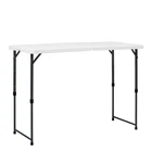 You may also like Modern 38.6" Wood Lift Top Coffee Table with Hidden Storage Shelf Living Room US 81.84 USD 86.15 USD Free shipping 5% off Square Side Table Wood Living Room Furniture w/ Storage Rustic Weathered Oak US 68.88 USD 72.5 USD Free shipping 5% off Wood Rectangle Coffee Table Sturdy Living Room Sofa Side Den Office Furniture US 41.52 USD 43.71 USD Free shipping 5% off Narrow Console Table Industrial 2-Tier Entryway Hallway Storage Sofa Table New 59.37 USD 62.49 USD Free shipping 5% off High Behind Couch Table W/ Outlet Narrow Console Table Living Room Entryway New 78.27 USD 82.39 USD Free shipping 5% off C Shaped Accent Table Snack Side Table Living Room Bedroom Couch Laptop Stand US 44.44 USD 46.78 USD Free shipping 5% off Round Coffee Table Storage Rustic Living Room Sturdy Metal Legs Wood Grain New 74.13 USD 78.03 USD Free shipping 5% off Modern Rectangle Lift Top Coffee Table Hidden Storage Shelf Display Living Room 121.12 USD 127.5 USD Free shipping 5% off Versatile Wood Coffee Table Spacious Indoor Durable Top Surface Livingroom Home 41.52 USD 43.71 USD Free shipping 5% off Modern Hairpin Rectangle Coffee Table Indoor Livingroom Study Decor Furniture US 65.31 USD 68.75 USD Free shipping 5% off Side Table 3 Tier Stand with Storage Shelves for Office Bedroom End Table 24.37 USD 25.65 USD Free shipping 5% off Folding End Table Storage X-shaped Legs MDF Wood W/ Removable TV Tray 22 Pound 47.94 USD 50.46 USD Free shipping 5% off Make your next event a success with this 4-foot adjustable folding table from . Adjusts to four different heights to meet all your needs. Our pinch-free buttons allow for easy folding and unfolding of legs, plus the carry handle makes it perfect for taking it on the go. The scratch and stain-resistant resin surface ensures lasting durability and easy clean-up. The adjustable fold-in-half table is perfect for all your different needs and occasions. It is great for everyday use, both indoors and outdoors. Fold-in-half table with 4 adjustable height settings: 48" L x 24" W x 22" / 24" / 29" / 34" H Comfortably seats 4 adults Adjust the height by pushing side buttons and lifting the tabletop. Patent-pending ergonomic pinch-free push-button for easy folding and unfolding of legs Auto-locking and unlocking system in the center of the table Easily folds in half for convenient storage or transport Constructed of UV-Protected high-density polyethylene plastic and gray powder-coated steel Oval legs for strength and durability Includes built-in carry handle, for easy transportation Built for indoor and outdoor use Durable Caps on legs to prevent floor damage No assembly is needed, can be open and folded in a few seconds Folded dimension: 24. 49" L x 23. 98" W x 2. 99" H Weight: 17. 42 lbs. Weight Capacity: 200 lbs. Perfect for your home, office, or outdoor activities You may also like Incontinence Postpartum Underwear Women Maximum Absorbency Discreet Comfort Fit 19.25 USD 20.26 USD Free shipping 5% off Extra Large Wheeled Storage Bin W/ Latch Lid Stackable Totes Home Office Garage 23.61 USD 24.85 USD Free shipping 5% off 10 Inch Pole Saw Attachment Trimmers Pruning Dead Branches Automatic Lubrication 54.84 USD 57.73 USD Free shipping 5% off Sensitive Skin Dog Food Salmon Protein Digestive Health Skin Coat Crunchy Kibble 48.95 USD Free shipping IATA Approved Plastic Dog Kennel Medium Travel Easy Assembly Safe Design New 109.15 USD 114.9 USD Free shipping 5% off Organic Extra Strength Biotin Gummies Hair Skin Nail Support 10000mcg 90 Count 16.02 USD 16.86 USD Free shipping 5% off Lightweight Graphite Spinning Rod Cork Grip Freshwater Saltwater Fishing New 41.18 USD 43.35 USD Free shipping 5% off New 12-Piece White Stoneware Dinnerware Set Serving Plates Bowls Kitchen Table 21.1 USD 22.21 USD Free shipping 5% off Beach Walk Candle Long Lasting Plant Wax Indoor Home Fragrance 150 Hour Aroma US 36.79 USD 38.73 USD Free shipping 5% off Rustic Whiskey Barrel Planter Indoor Outdoor Drainage UV Resistant Plastic New 23.71 USD Free shipping Disposable Liquid Wax Lamp Fuel 17 Hour Clean Burn Indoor Outdoor Use 48 Pack 66.77 USD 70.28 USD Free shipping 5% off Durable Steel Clothes Drying Rack Foldable Free Standing Laundry Organizer New 56.94 USD Free shipping