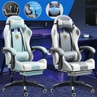 Description The gaming chair is a perfect design for the game geek or executive, giving you a comfortable experience and inspiring mood to get into it when you are gaming. As well as add a gaming tone to your room. This Gaming chair is made of premium Technology fabric, with a smooth and sleek touch that you will love this comfort. And the head cushion support relieves your neck from long time occurring pressure. And padded armrest makes your hand relax at any time when you leave out the game, ergonomic support and adjustable lumbar are more comfortable sitting and release your tiredness. Making you feel relaxed and refreshing your mood. Also, the retractable footrest can make your leg have a good rest when you are lying on the High-back. The premium gas lift can allow you to adjust a height you are comfortable with. As well as you can feel free to tilt at a comfortable angle of 90-135 degree in your need, very easy to recline. And it is built in a 360-degree rotation design, The caster wheels move more easily and smoothly. And a high Load-Bearing base provides stability and safety. Features 【Reasons for Choosing us】 :Experience unrivaled comfort and style with our gaming chair. Featuring a see-through butterfly embroidery design, pocket springs for support, breathable fabric, and highly elastic polyurethane cushioning. Enjoy effortless adjustment with a 10 cm high safety air pressure bar and step-free recliner. Elevate your gaming experience with our exceptional chair. 【Unparalleled Comfort】 : Made from a recyclable polyurethane core material, this chair is molded in one piece, ensuring exceptional comfort during extended sitting. With no adhesives used, you can enjoy worry-free seating without concerns about formaldehyde. The independent pocket springs in the seat provide a sofa-like sitting experience. 【Breathable Fabric】 : Our self-developed, soft, and breathable fabric, enhanced with quilting technology, increases breathability by two times. You can sit comfortably for long periods without feeling sweaty or humid. Regardless of the season, the chair maintains a pleasant sitting environment. 【Stylish and Versatile】 : The chair's simple design and understated color combinations effortlessly blend with any home interior. The delicate fabric complements various home environments, adding a touch of refinement. 【Convenient Interlocking Armrests】 : The interlocking armrests prevent elbow strain when adjusting your sitting position. They automatically adjust according to the backrest angle, eliminating the need for complicated adjustments. Specifications Material: Technology Fabric Tilt adjust: 90-135 degree Overall Size:As shown in the picture Padding thickness: 6cm Capacity Weight: 110 kg Colour: Grey-white/ Blue-white Package Content Item Description: Quantity: Gaming Office Chair x 1 Instruction manual x 1