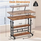 Introducing our Mobile Standing Desk with Power Outlets and USB ports, designed to enhance productivity and convenience. This rolling desk features a *-foot power cord for easy charging, double storage shelves, and a multifunctional monitor stand. With an adjustable height range of 24.2" to 33.66", it promotes ergonomic comfort and includes 4 swivel wheels with brakes for mobility. Rounded corners and extra hooks ensure safety and versatility, making it perfect for offices, bedrooms, or small apartments. Constructed from 15mm MDF and high-quality metal, it supports up to 150lbs and offers a spacious, water-resistant surface Mobile Standing Desk with Power Outlets: Equipped with 2 power outlets with switch and 2 USB ports, as well as a 4.9-foot power cord, this rolling standing desk makes it easy to charge electronic devices such as your cell phone, laptop, gaming device, or Bluetooth device. Make use more convenient whether at work or play Large Storage Space:Add a multifunctional monitor stand on the desktop, which can not only be used as a laptop and tablet, but also as a creative space to display small personal ornaments. The underside of the desktop is equipped with double storage shelves for easy storage of everyday items and a safety stopper on the bottom to prevent items from falling. Whether it's your living room or office, it will help you organize and beautify your space efficiently! Adjustable Height & Easy Move: The desktop height of this mobile laptop table is freely adjustable from 24.2“ - 33.66”, you can adjust the height according to your needs to reduce headache and neck pain. Equipped with 4 360° swivel wheels with brakes on casters, you can easily move the computer table to wherever you want to place it while keeping it stable and not sliding Multifunctional Desk: With rounded corners for added safety and two extra hooks on the side of the table for hanging bags, headphones, etc., the C-shaped design can be used as an office desk, study table, bedroom table, computer game table, writing desk, and is suitable for offices, living rooms, lounges, bedrooms, or small apartments Sturdy and Durable: Made of 15mm MDF and a high-quality metal frame, it is not only structurally stable, but also capable of holding up to 150lbs. Its surface is smooth, water-resistant and easy to clean. The desktop measures 31.5“ x 17.7”, providing a spacious and comfortable work or study space