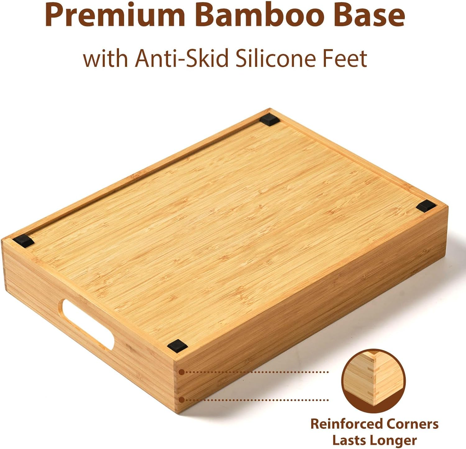 Food Container Lids Organizer: Made of premium bamboo, especially the bottom of the organizer is quite different from others. Natural even texture, solid construction. Holds food container lids (round, square, rectangular) up to 9.5”. Adjustable Compartment Areas: The box comes with 11 slots and 5 adjustable dividers. Create different sized compartments for various items. With handles for easy grip. Anti-Skid Silicone Feet: They raise the caddy off humidity when used in any humid circumstance, and when used in drawer, they keep it immobile when pulling out and pushing back the drawer. Reinforced Structure: Mortise and tenon structure makes it hold up well. Get Organized Everywhere: Versatile storage tray for food container lids, teabags, medicine, spice bottles, stationary, art supplies, makeup, etc. Product Description Bamboo Lid Organizer Premium bamboo, natural pretty texture. With 5 removable & adjustable dividers. Organize the container lids and makes the cabinet and drawer clean. Large and Tall Version Bigger organizer and taller dividers. More capacity. Good for organizing big and tall container lids. Reinforced Corners - Durable Solid base - built as one piece. Reinforced corners - mortise and tenon structure. Anti-skid pads prevent the organizer from falling off. Versatile Organizer A storage solution anywhere at home. Lids, spice organizer in kitchen; Snack organizer in pantry. Perfect gift to friends and family members. 1 Lid Organizer 2 Plate Organizer 3 Kitchen Drawer Organizer 4 Storage Boxes 5 Desk Drawer Organizer Customers also like Add to Cart Add to Cart Add to Cart Add to Cart Add to Cart Add to Cart Customer Reviews 4.7 out of 5 stars 1,431 4.8 out of 5 stars 16 4.7 out of 5 stars 83 4.8 out of 5 stars 3,216 4.8 out of 5 stars 230 4.8 out of 5 stars 64 4.8 out of 5 stars 49 Price $23.95 $ 23 . 95 $21.95 $ 21 . 95 $29.95 $ 29 . 95 $28.95 $ 28 . 95 $27.99 $ 27 . 99 $27.95 $ 27 . 95 $19.99 $ 19 . 99 Size 13.2"W × 10.4"D ×3.7"H 10"W × 10"D ×9.6"H 13~20"W × 17"D ×2.5"H 13W × 17"D ×2.5"H 12"W × 17"D ×2.5"H 13W × 15"D ×2.5"H 12W × 9"D ×2.1"H Material Premium Bamboo Premium Bamboo Premium Bamboo Premium Bamboo Premium Bamboo Premium Bamboo Premium Bamboo Used as Lids / Snack Organizer Plate / Spice Organizer Silverware / Utensil Organizer Silverware Organizer Utensil Organizer Silverware / Junk Organizer Office Accessories Organizer Reinforced Corners ✔ ✔ ✔ ✔ ✔ ✔ ✔ Anti-Skid Feet ✔ ✔ ✔ ✔ ✔ ✔ ✔ Adjustability Rearrangeable Dividers No Expandable No Rearrangeable Boxes Rearrangeable Boxes Rearrangeable Dividers