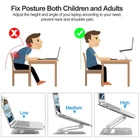 【Wide Compatibility】: This laptop desk stand fit all laptops 10"-17", support up to 6KG, such as Apple MacBook 12 / 13, can be used as MacBook Air Stand, MacBook Pro Stand, compatible for Lenovo ThinkPad, Dell, HP, ASUS, Chromebook, and other notebooks. A meaningful back to school supplies gift for teachers and students 【Adjustable Design】: This computer stand can raise your laptop screen to eye level, Keep you in right posture, reduce neck and shoulder pain. Especially good for teachers and students teaching online, home offices 【Upgrade Stable And Protective】: Upgrade 3.0 mm thickness premium Aluminum alloy design. Heighten 1.8cm front protective hook and Anti-skid silicone mat helps to prevent laptop slipping. Also Rubber pad in the bottom ensure your laptop stable on the desk 【Keep Laptop Cool】: This can be use as laptop cooling stand. Metals helps to absorb and discharge heat easily. The hole on the surface provide more air flow than if it were laying flat on the table 【Keep Laptop Safe and Save Desk Space】:This Laptop riser keeps your computer away from water coffee or juice, and you can put your laptop accessories under the stand, such as mouse and keyboard, book. It folds flat if you need to take it away