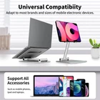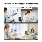 Product Description: Introducing our high-rise adjustable stand, a versatile accessory designed to elevate your laptop or iPad to your preferred height and position with ease. Whether you're working, studying, or enjoying multimedia content, this stand provides a stable and comfortable platform for your beloved devices Elegant Design and Stability: Meticulously engineered for aesthetics and stability, our stand ensures that the panel always remains within the base's weight-bearing range, guaranteeing 100% stability. Its sleek design complements any workspace while offering ergonomic support for your neck, shoulders, spine, and eyes. Versatile Usage Scenarios: Suitable for a variety of settings including offices, study spaces, conference rooms, presentations, kitchens, video watching, gaming, bookshelves, and podiums, this stand adapts seamlessly to your needs. Multiple Usage Methods: Whether sitting, standing, or reclining, our stand accommodates your preferred posture. You can use it with an external keyboard or type directly on your laptop keyboard without any shaking. The front-end fixed teeth ensure secure positioning without compromising typing or touchpad usage, while the keyboard anti-slip strips provide additional stability. Universal Compatibility: Compatible with most brands and sizes of electronic devices, from large 17.3-inch laptops to smaller tablets and smartphones. The silicone design of the middle frame caters specifically to smaller devices such as notebooks, iPads, phones, and books. Foldable and Portable: Our stand is foldable for easy transportation and storage, taking up minimal space when not in use. Its unique pivot design supports up to 15 kilograms while offering smooth linear folding and opening, allowing you to adjust the position and angle effortlessly to suit your comfort. Enhanced Stability and Comfort: The front-facing silicone pads prevent slipping when using an external keyboard, ensuring a stable and comfortable typing experience. The four enlarged silicone pads on the back protect the tabletop and prevent slippage. Ideal Gift: Perfect for heavy mobile device users, corporate professionals, and students. It makes a practical and thoughtful gift for occasions such as Christmas, Thanksgiving, back-to-school season, employee rewards, Mother's Day, and Father's Day. ✔️Ergonomically designed: Crafted from high-quality aluminum alloy, this stand is tailored for your convenience, comfort, and well-being. This laptop stand requires no installation, it can securely holding your laptop at any desired position, offers ample protection for your neck, shoulders, lumbar spine, and eyes. ✔️Extensive height adjustment range: Featuring a long support pole, it provides a broader range of height adjustments. The screen's center position can be fixed steady anywhere between 5 and 22 inches, ensuring optimal comfort for work, study, and daily use. ✔️Strong damping hinge, reinforced base design: With a maximum load-bearing capacity of 33 pounds (15 kilograms), it allows for stable typing without shaking or wobbling. The panel remains within the base's load-bearing range, ensuring stability. ✔️Compatible with most sizes of mobile electronic devices and lifestyle scenarios: Including laptops, iPads, smartphones, projectors and books, up to 17.3 inches. Suitable for offices, study rooms, meeting rooms, presentations, kitchens, video watching, gaming. ✔️Dual-color anti-slip buffer silicone design: Not only aesthetically pleasing but also offering comprehensive protection for your devices and a comfortable user experience ✔️Suitable for a wide range of users: Ideal for office workers, remote workers, teachers, students, freelancer, gamers. It's a practical and useful gift for Birthday, Christmas, Thanksgiving, back-to-school season, employee rewards, Mother's Day and Father's Day.