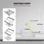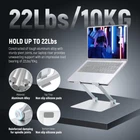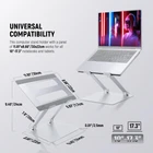 【Universal Compatibility】 This computer stand holder with a panel of 11.81"x8.66"/30x22cm works for all 10"-17.3" notebooks and tablets. Broadly compatible with MacBook Pro 16" 14" 2021 Air 12" 13" 15" 2018 2019 2020 Microsoft Surface Google Pixelbook Dell XPS HP Chromebook iPad Pro 12.9" iPad Air 10.9", etc. 【Height & Angle Adjustment for Ergonomics】 CP01S desk laptop stand allows height adjustment up to 8.66"/22cm with viewing angle tilting within 0-90°. Designed with ergonomics in mind, it elevates your screen to eye level, improving your posture to minimize back & neck pain for extended and comfortable laptop use. The stand, weighing a mere 32oz/919g, can be folded flat for travel/business trips 【Firm Structure with 22lb/10kg Load Capacity】 Constructed of tough aluminum alloy with sturdy pivot joints, our laptop rise provides unwavering support with an impressive load bearing of 22lb/10kg. It is firm enough to support typing and scrolling on your notebook without the risk of collapsing. Finished in a delicate silver matte, it adds sleekness and elegance, making an aesthetic addition to your setup 【Stable Base & Nonslip Silicone Pads】 The extra large square base (9.45"x8.66"/24x22cm), devised with an anti slip silicone pad on each corner, ensures superior support capacities and stability to hold your device reliably, not tipping over. Plus, the panel is also securely affixed with silicone pads to protect your laptop from sliding & scratches 【Efficient Heat Dissipation】 The platform has large rectangle ventilation cutouts to ensure ample airflow for fast heat dissipation, keeping your computer cool and preventing overheating and crashing down. The design is to maintain your device at its optimal performance.