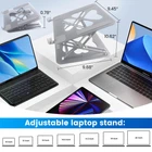 Ergonomics: Our laptop stand for desk is ergonomically designed, adjustable in height and angle, and can elevate your laptop to eye level, reducing neck and shoulder fatigue Stable Triangle: This computer stand adopts a triangular structure, which has super stability and can bear a maximum weight of 55 lbs (25 KG), ensuring your laptop is safe and worry-free. Ideal for gaming and extended use Excellent Quality: Among all laptop stands, our laptop stand far exceeds other products in terms of load-bearing and stability, making it an ideal choice for your laptop Top Cooling Performance: Extra-large vents enhance air circulation to prevent your laptop from overheating during extended use, keeping it cool. This portable foldable laptop stand is both portable and durable and fits perfectly into any travel bag Wide Applicability: Adjustable size design, suitable for all laptops from 10-20 inches, just use tools to adjust the length of the hook, it will fit all your laptops