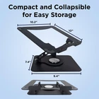 RAISE: Improve your posture and comfort with this raised laptop stand for desk, raising screens to eye level for professionals and students alike. TILT: Reduce glare and eye strain with precise height adjustments with this adjustable laptop stand for desk, ensuring optimal viewing angles for office workers and gamers. ROTATE: Enhance collaboration and flexibility with a computer laptop stand with 360° rotation, perfect for designers, presenters, and remote workers sharing screens effortlessly. COOL: Keep laptops cool without noisy fans using this vented metal laptop cooling stand for desk, ideal for long hours of work or gaming sessions. USA QUALITY: Trust in a brand committed to quality and customer satisfaction since 2010, providing reliable ergonomic laptop stand for desk for all users.