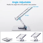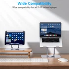 【Keep Your Desk Clean】The laptop stand is perfect for the cluttered kitchen counter, table or small desk with its foldable design that also swivels to give everyone around the table easy access the laptop's screen. This Swivel laptop stand can bring your laptop up to the level matching your monitor, holding your laptop as a second screen to smooth your flow while working or studying. 【360°Rotation】Featuring a 360° rotatable Two-axis connecting with the base, makes the 360°rotation more flexible, computer stand allows you to swivel your laptop to any angle. The rotating laptop stand for desk allows you to easily share your screen with someone sitting across the room or at another desk. It also works great for ideas sessions when collaborating with others over video chat or calls. 【Wide Compatibility】The laptop raised stand supports all devices from 10-15.6 inches. Made with premium aluminum alloy which make it more stable. The laptop stand also contains hooks and a non-slip silicone cushion, ensuring your device (up to 22lbs) will never slide when you're using it. 【Ergonomic Design】You can adjust the height and angle of the laptop riser to set the most comfortable position while using your laptop. Because of its ergonomic design, the laptop stand adjustable helps reduce your chance of developing back, neck and spinal problems. Which ensures you in a comfortable position no matter sitting down or standing up. 【Foldable & Portable】Laptop stand for desk can fully foldable, it is easily to used, carry. You can take your laptop and this portable laptop riser wherever you go. You can set it up wherever you are as a comfort aid. The laptop stand is simple to transport whether you wish to work in a coffee shop or a library.