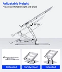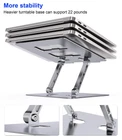 Adjustable Height: This foldable laptop stand adjusts the height and angle of your laptop, flexibly raising the height of your laptop from 2 inches to 21 inches to better match sitting and height.It is ergonomically designed to minimize neck fatigue and say goodbye to neck pain More stability: The office computer stand is made of high-quality thickened aluminum, and the larger and heavier turntable base can support 22 pounds (10 kg), which is more stable and stronger without worrying about any shaking.Rubber non-slip strips on the stand add friction to protect your laptop from scratches and slippage Broad compatibility: Compatible with MacBook Pro/Air, Dell, Asus, Lenovo, Dell, HP, Microsoft, Toshiba, Samsung and all laptops or tablets from 10 to 17.3 inches, this laptop is a better choice for home study, office or conference room work Better heat dissipation: The laptop tray adopts an open hollow design, which not only enhances the air circulation, but also greatly improves the working efficiency of the laptop fan to achieve the best heat dissipation effect, so as to solve your concerns about the weakening of the heat dissipation performance caused by using the computer for a long time Please note: When using the bracket, please keep the bracket base and the bracket computer platform at an angle of about 45 degrees to prevent the bracket from falling automatically After sale: 100% 30 days re-turn, 12 months free replacement, 365*24 hours email contact service support, any questions, please feel free to contact me