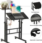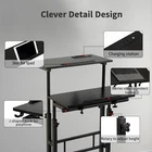 Upgraded Power & Storage Features: Designed for modern work and leisure, this mobile standing desk now includes 2 USB ports, 3 power outlets, and a 4.9 ft power cord, keeping your devices powered without clutter. The built-in tablet slot provides a dedicated space for hands-free viewing, making this standing desk with wheels ideal for home offices, study sessions, or creative work Customizable Height for Better Posture: Easily adjust the height from 27.5” to 45.3” to transition between sitting and standing. This ergonomic design promotes better posture, reduces neck and back strain, and enhances focus and productivity—perfect for remote work, studying, or crafting Versatile & Mobile for Any Space: Featuring smooth-rolling rubber wheels, this rolling computer desk moves effortlessly between rooms. Use it as a workstation in the office, a rolling laptop stand in school, or an art and drafting table at home—wherever flexibility is needed, this walking pad desk adapts Durable Build for Heavy-Duty Use: Built with a reinforced steel frame and premium MDF desktop, this sturdy standing desk for walking pad supports multiple monitors, keyboards, and work essentials. Its stable structure ensures long-lasting durability for everyday use Quick & Hassle-Free Assembly: No complicated setup—this adjustable rolling desk includes clear instructions and all necessary hardware, allowing you to assemble it in minutes and start enjoying a more comfortable and efficient workspace Product Description One Desk, Unlimited Possibilities 1 Home & Office 2 Living room 3 Gym 4 Meetings & Lectures Customizable Design for Comfort and Productivity Adjust the desk height from 28" to 44" to suit your standing or sitting posture. The tiltable tabletop enhances versatility, making it perfect for drawing, writing, or ergonomic office setups. The integrated charging station supports multiple devices simultaneously, ensuring uninterrupted work sessions. Perfect for modern home offices that demand functionality and convenience. Smooth-rolling lockable wheels allow you to shift between rooms with ease. Whether in the living room, bedroom, or study, this desk adapts to your preferred workspace. Designed with a tablet groove, anti-slip bar, tiltable tabletop, and charging station, this desk offers thoughtful details to enhance your workspace and keep you organized. 1 Spacious Dual Tabletop 2 Generous Surface 3 Stable H-shaped Legs