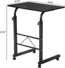 Product Dimensions 23.62"D x 15.75"W x 27.56"H Color Black Style Modern Base Material Engineered Wood Top Material Type Metal, Engineered Wood Finish Type Powder Coated, Laminated Special Feature Portable Room Type Office, Bedroom, Living Room Recommended Uses For Product Working See less Shape Rectangular Desk design Computer Desk About this item 【Adjustable height & Movable】 portable laptop desk has an adjustable height of 27.56-37.8" andit has 4 rolling, 2 wheels that can be fixed at any time, so you can move or adjust the computer desk to your ideal position based on these features. In addition, this adjustable computer desk can protect you from headaches and neck pain. 【C-Shaped Design】 The unique C-shaped design of the mobile computer desk allows you to place your computer desk anywhere you want, making it ideal for use under most sofas and bed frames. You can also use it as an office workstation, a bedside table in your bedroom, and a side table next to your sofa for your daily activities. 【Medium & Stable】 The portable computer cart has a 23.62" L x 15.75"W tabletop to provide you with adequacy working space. Meanwhile, the thickened metal and P2 grade 15mm particle board has high load-bearing capacity and remains stable. 【Simple Appearance & Easy Assembly】The modern and minimalist design allows this computer desk to fit into any room of your decorating style. The package comes with good installation instructions and the necessary tools, making it very easy to assemble. 【Quality Customer Services】If you have any questions about portable laptop table , please feel free to contact us and we will provide you with satisfactory solutions. Product Details Adjustable Height The mobile side table is height adjustable from 27.16" to 38.58" by loosening and tightening the bracket screws. Lockable wheels The wheels can be locked and rotate 360 degrees, making it easy for you to move the desk to any place in the room. For Living Room For Bedroom