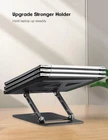 Wide Compatibility: The laptop stand for desk is compatible with all 10''-15.6''laptops, such as APPLE, Mac Macbook, Macbook Pro, Lenovo, ThinkPad, ASUS,Dell, HP, ASUS, Microsoft, Toshiba, Samsung, kindle,Chromebook,and other notebooks Ergonomic Design: The laptop holder Z-type design is good for adjusting an ideal height for typing, watching and sitting properly, so you can stand up to work or raise the eye level, get better posture. An ergonomic laptop stand will relieves strain on hands and back caused by a forced downward posture, furthermore you won't need to stretch your arms in awkward ways to type. Steadiness and Protection: With the texture and aluminum material, this adjustable laptop stand is more stylish and durable,supporting up to 13 lbs. Increased 4 non-slip rubber pads on the bottom to protect your device from scratching or sliding Ventilation and Cooling: computer stand is made of high-quality aluminum, it can absorb and discharge heat easily. The holes on the laptop riser surface will increase the airflow to cool your laptop and prevent from overheating and crashes . This will ensure a longer life for your laptop. Foldable and Portable: The foldable structure of portable laptop stand is easy to fit into your backpack for convient travel trips . This foldable laptop stand can be effortlessly folded, thus saving space on your desktop. you can take the stand for laptop/ipad anywhere at any time. No matter whether you're going to the office, a coffee shop, or any other place.