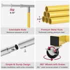 【Practical Product Design】The top horizontal rod of the garment rack can be extended from 31.1 inches to 48.19 inches. The garment rack is small but still has enough storage space. The top of the garment rack has stoppers on both sides, not only prevents clothes from falling off, but also provides a perfect place for hats. The rods at the bottom of the garment rack can storage boxes, it not only gives you more storage space but also makes the garment rack more stable. 【High Quality Material】The garment rack is made of thickened high quality steel. This makes the garment rack sturdy and stable, and allows you to hang multiple pieces of clothing at the same time. 【Movable & Stable Stopping】The bottom of the garment rack has four wheels that can rotate 360°, which makes the rack flexible and easy to transport. Two of the wheels can be locked so that the garment rack can be stopped stably. Meanwhile, the wheels will not make noise or scratch the floor when rolling. 【Multi-purpose】 It is suitable for various scenarios, such as home, clothing store or garage sale, and it is very suitable for providing additional clothing storage to display boutique goods, or to provide space for clothing display in theaters or studios. 【Easy to Install】The product has a detailed manual and installation tools attached, meanwhile we have grouped and categorized each part to make it easy that you can find the corresponding parts according to the instruction manual. You can also refer to the installation video next to the main picture of the product to install the product. You can install it and use it in half an hour.