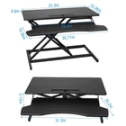 eBay Standing Desk Monitor Riser Featured Item Product Detail Image Gallery Product Description Overview: Sit on top of your existing desk and allow you to work comfortably from either a sitting or standing position. It features smooth and quiet height adjustments without shake or rattle, ensuring a stable surface for all your devices. Featured with 44LBS max load, 5.12in-20.08in quick height adjustment, large working area can place one monitor, one notebook PC within 32inches, and some files. Come with a phone/tablet slot on keyboard tray, entertain yourself and offer you a healthier work style. Eliminating or reducing neck, back and shoulder pain. Features: *WORK HEALTHIER: Our standing desk can be adjusted to the desired height(5.12in-20.08in) smoothly via pressing the spring handle. Sit and stand throughout the day for a healthier way to work. This sit to stand desk riser is designed to encourage more movement throughout the day helping to improve productivity and energy,as well as eliminating or reducing neck,back and shoulder pain. *LARGE DESKTOP & KEYBOARD TRAY: 31.3x15.36inches desktop working area can place one monitor,one notebook PC within 32inches,and some files. Come with a phone/tablet slot on keyboard tray,you can put cell phones,tablet pc on the stand up desk. Entertain yourself and give you a break. *STABLE & DURABLE: Made of premium density board with special blistering process and coated iron materials,support 44LBS max load. Our height adjustable desk starts very smoothly and there are rubber feet pads,which can better stabilize this standing desk assured that your expensive equipment will be safe and secure on this stand up desk desktop. *WIDE APPLICATIONS: Our standing desk is most suitable for the office,and our height adjustable desk is also suitable for bedrooms,balconies,living rooms. Enjoy watching documents while drinking coffee. *EASY SETUP: Simply pull your already assembled adjustable standing desk out of the box and attach the ergonomic keyboard tray using the included hardware. Quick installation and enjoy your working time. Specifications: Brand: iMounTEK Product Type: Height Adjustable Workstation Desk Max Load Capacity: 20kg/44LBS Materials: 15mm Density Board with Blister Processing,1.8cm/0.71in Iron Coating Tube Height Adjustable: 13cm/5.12in-51cm/20.08in Application: Perfect for laptops, notebooks, tablets and monitor within 32in Tablet/Phone Slot Size: 28.2x1.7x2.5cm/11.1x0.67x0.99inches Desktop Dimensions: 79.5x39x1.5cm/31.3x15.36x0.6inches Keyboard Tray Dimensions: 78x25.5x1.5cm/30.71x10.04x0.6inches Unfold Item Size w/ Keyboard Tray: 79.5x64x51cm/31.3x25.2x20.08inches Foldable Item Size: 79.5x64x13cm/31.3x25.2x5.12inches Item Weight: 13.2kg/29LBS Package Size: 90x57.5x16cm/35.44x22.64x6.3inches Package Weight: 14.7kg/32.41LBS Package Contents: 1 x Workstation Desk 1 x Keyboard Tray 1 x Screw Tool Kit 1 x Installation Instruction Terms & Conditions Thank you for your business !