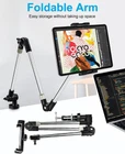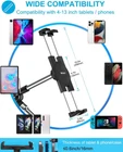 Product Description Adjustable Tablet Mount Holder, 35" Desk/Bed Clamp Phone iPad Stand with Foldable 360° Swivel Arm for iPad Pro 12.9 Air Mini, iPhone, Galaxy Tabs, Nintendo Switch, 4-13" Cell Phones and Tablets 【Wide Application】 The desk stand with an adjustable clamp base can open max to 2.36 inches. Non-slip cushion protects your furniture from scratches, The foldable tablet stand can be fitted to your desk, bedside table, headboard, bed board, kitchen cabinet, bookcase or more places you find suitable. 【Flexible & Quick Positioning】 Whether sit or recline, the clamp mount will securely hold your tablet or phone at the perfect height and viewing angle. Simply loosen the adjuster, spin it into the perfect angle, then tighten the adjuster.The metal structure of the tablet holder is more stable and flexible than the gooseneck arm holder. When you touch the device, the device screen will not shake violently. 【Flexible Adjust Height and All-Angle】 Unique Design - Each tablet arm can individually flexibly adjust angle and position. tablet boom arm offers max length/height 34inch in horizontal/ vertical distance, and support 360° full rotation and 180° bending. fitting for movie, video, playing game, live broadcasting, baking, gym, cooking, entertainment, working etc. 【Fixed Joint Design with Gears】 Desk tablet stand is made of durable and reinforced aluminum alloy and gear fixing design for outstanding bearing capacity, it doesn't dip or sink over time due to gravity, protects tablet phone from shaking, suddenly dropping and making noise. Max load: 5 lbs. 【Broad compatibility】This universal metal long arm tablet stand, the adjustable side clamps extend from 4.7 in to 10.2 in, compatible with all 4 - 13 inch smartphones and tablets, such as new iPad Pro 9.7 / 10.5 / 11 / 12.9, iPad Air 2, Air 3, Air 4, iPad Mini 1/ 2 / 3 / 4 / 5, iPhone 12, 12 mini, 12 Pro, 12 Pro max, 8, 8 Plus, X, XS, XR, XS Max, 11, 11 Pro / 11 Pro Max, Galaxy Tab/ Galaxy Note/ Galaxy S and more cell phones or tablets. About Us We are a reputable seller with many years of experience selling on eBay. Our goal is to provide high-quality products and excellent customer service. Shipping Items will be shipped within 1-3 business days when we received payment. (Orders are not processed on weekends & holidays) Tracking information will be sent once item is shipped. Delivery time depends on destination and other factors Item is shipped to ebay address. Leaving correct address can minimize delay. For international shipping and shipping to Guam, Hawaii and Alaska, Please contact us before placing the order. International buyers please note: Import duties, taxes and charges are not included in the item price or shipping charges. These charges are buyer’s responsibility. We will try our best to reduce the risk of the custom duties. Local pick-up is unavailable at the moment. Contact Us We reply any email messages within 1 business / working days(off-duty at weekend). If you do not get a response from us, then please check your junk or spam mailbox. Our Business hours: Mon-Fri 9:00-18:00, UTC/GMT +8 hours. Please contact us either by clicking "contact seller" in the "purchase history" section or simply click "ask a question" at the bottom of this page. If you are unsatisfied with our item or service, please contact us before leaving any feedback. We are committed to resolve all issues in a friendly and satisfactory manner.
