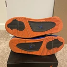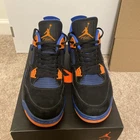 Selling my used size 12 cavs. Signs of wear include toe box creasing/scuffs, marks on midsole & outsole. Still in good condition & wearable. Extra orange laces included ——— Elevate your sneaker game with these Air Jordan 4 Retro Cavs. These stylish sneakers come in a classic black colorway with accents of safety orange and game royal. The nubuck upper material gives them a luxurious feel and the Cavs nickname adds a touch of personality. These sneakers are perfect for any athletic occasion and are sure to turn heads with their sleek design. The size 12 fit is ideal for men and the Air Jordan product line guarantees quality and style. Don't miss out on the chance to add these must-have sneakers to your collection.