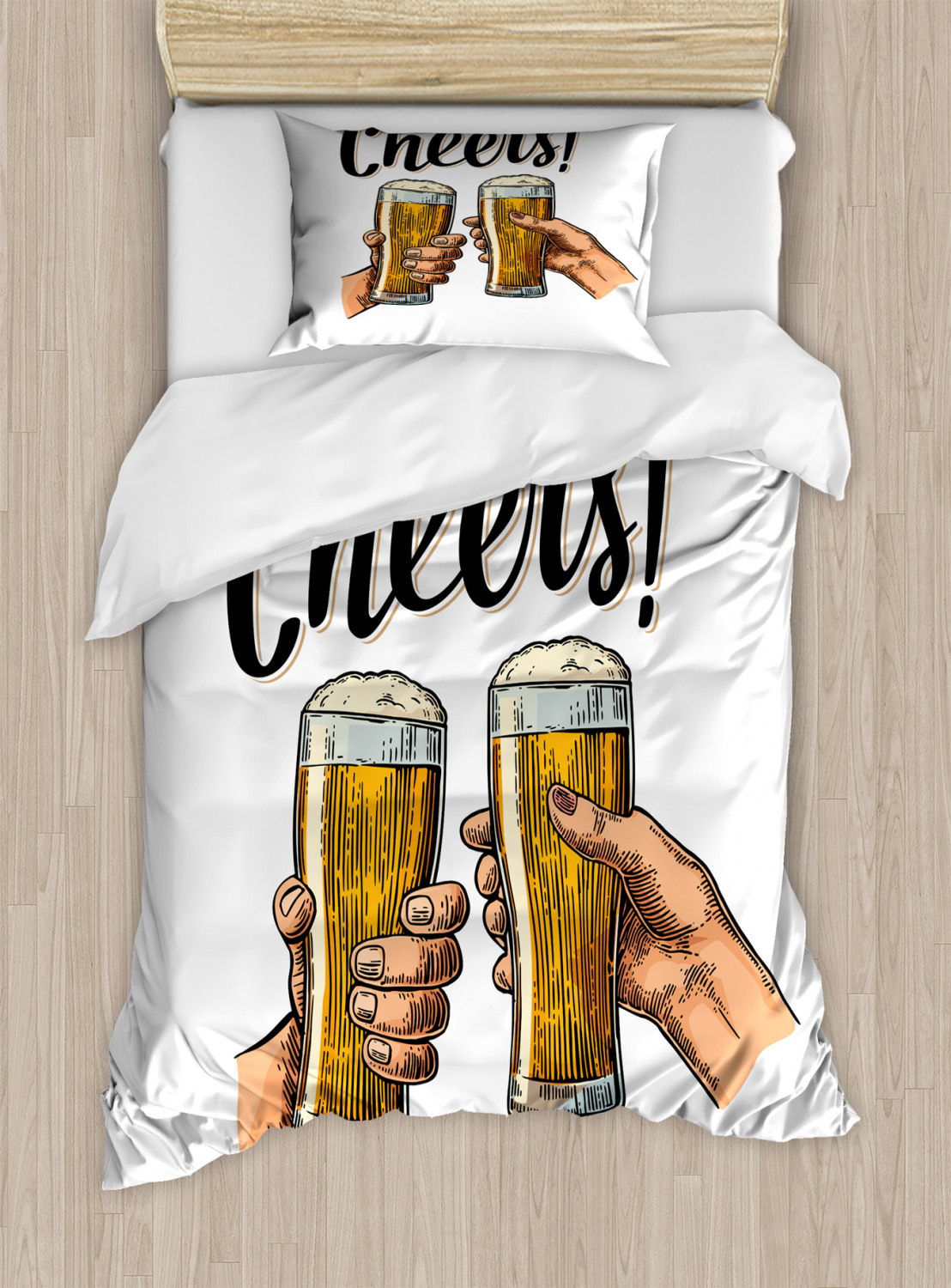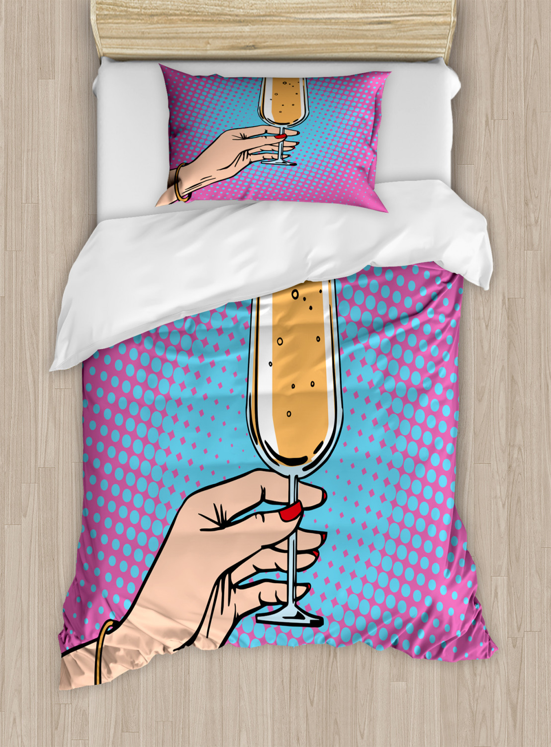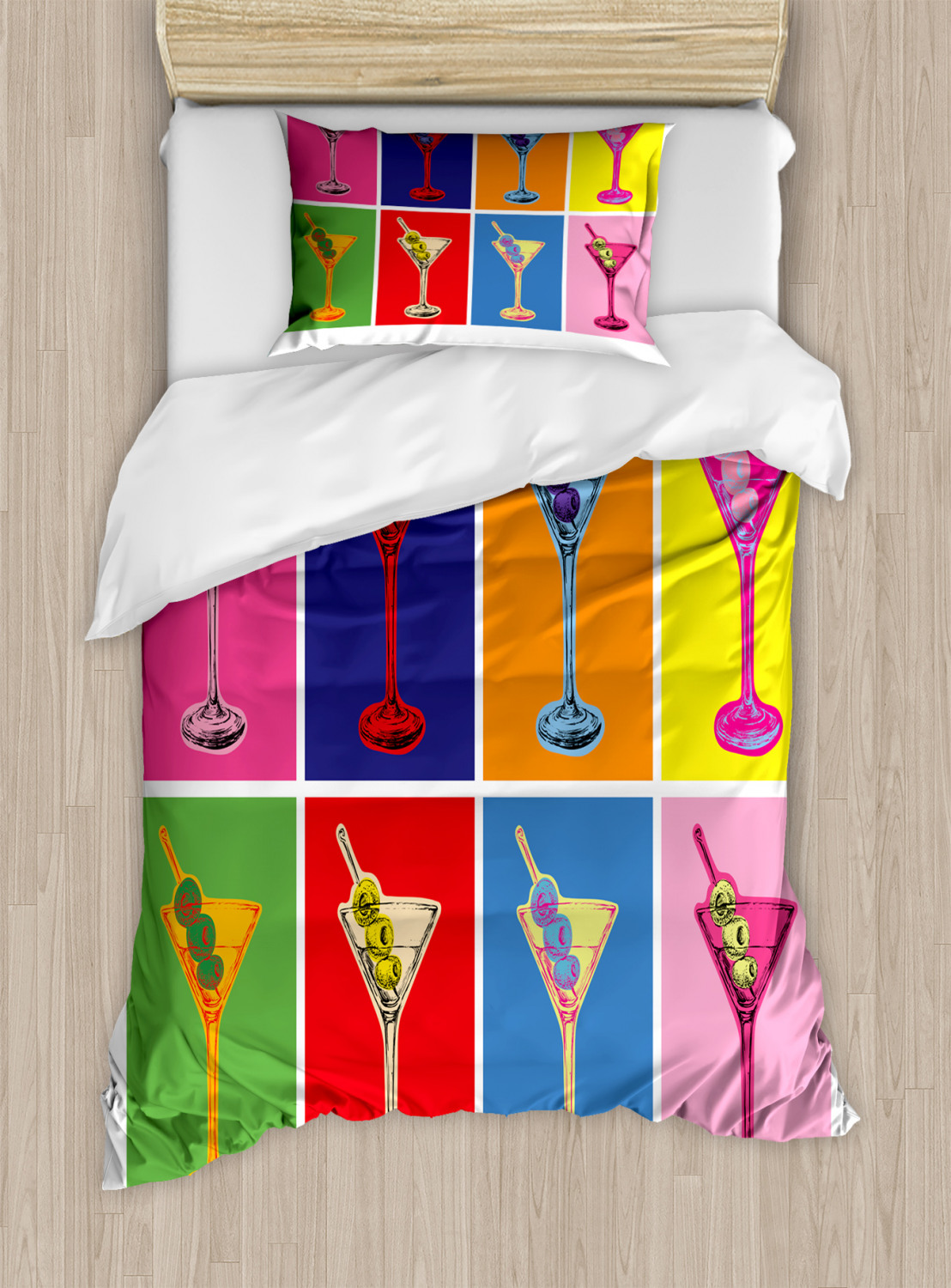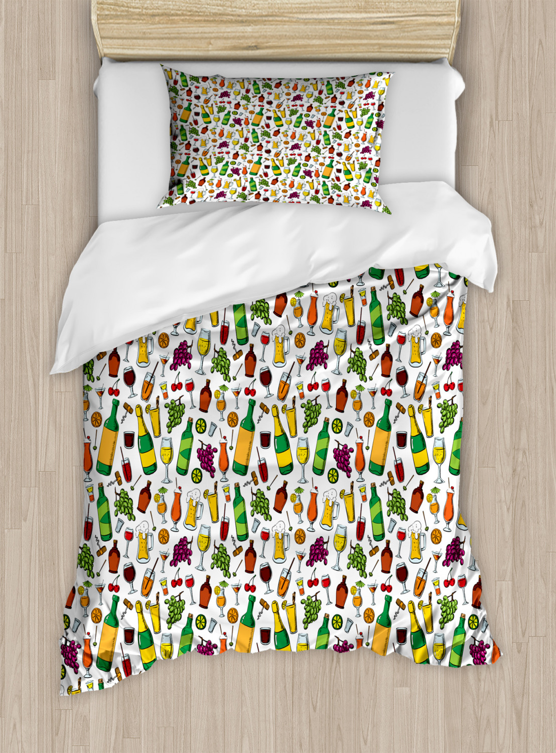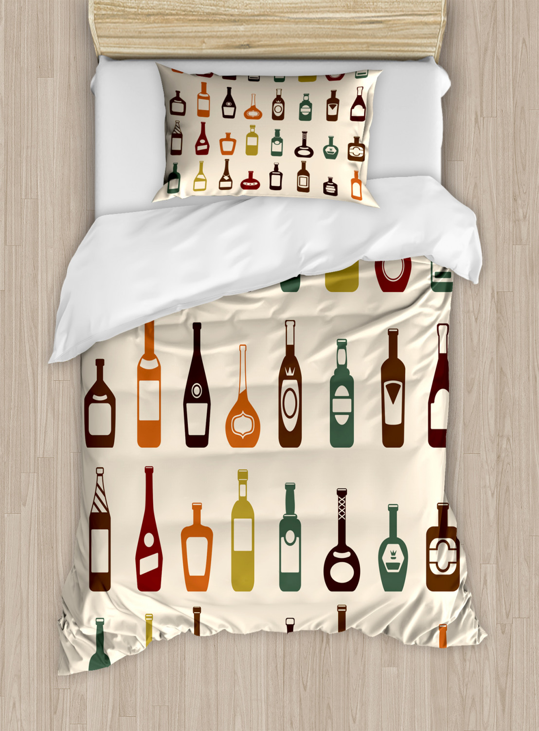 Alcohol Duvet Cover Set Twin Queen King Sizes with Pillow Shams Time to embrace modern looks, feel-good fabrics, and high-quality materials! King, queen, or twin - these 3 pcs duvet cover sets will work in any bed for any season! Woven from 100% brushed microfiber fabric, our duvet cover collection is constructed for maximum strength and ultra comfort only for you and your beloved ones. All you need to do is to simply put our duvet cover on your comforter and secure it with zipper closure, and enjoy your new bedding set! MEASUREMENTS: KING SIZE SET: Duvet Cover (104" W X 88" L) and 2 Pillow Shams (36" W X 20" L). QUEEN Size Set: Duvet Cover (88" W X 88" L) and 2 Pillow Shams (30" W X 20" L). Twin Size Set: 1 TWIN Duvet Cover 68" X 88" + 1 Pillow Sham 30" X 20". The duvet cover FEATURES hassle-free hidden zipper and the pillow shams have an envelope closure. Please note that COMFORTER NOT INCLUDED IN THIS SET. This only duvet cover, allowing you to protect the comforter/duvet insert from dust, mites, and other stains. WRINKLE FREE - The microfiber material creates ultimate softness and comfort, also provides wrinkle, fade, and shrink resistance when properly cared for. Very durable and sustainable material that will not endanger your health or the environment, either. No chemicals used, No dye substance harming the health of you or your family, %100 microfiber recyclable environmentally friendly fabric. LOW MAINTENANCE: Machine washable in cold water. Suitable for tumble dryer use on low heat. Can be ironed on medium heat when necessary. Do not bleach. Choose your style between thousands of different and creative patterns. Or simply find your perfect gift idea ever for housewarming, birthday, bridal shower, Christmas, Mother’s Day, and newlyweds… You can find a theme for everybody and every interest in our Ambesonne Store. The images we display have the most accurate color possible but, due to differences in pc monitors, there can be slight color differences between the product and the image. Due to manual measurement, please kindly allow 1-2 cm discrepancy. The Duvet Cover and Pillow Shams are printed on the FRONT SIDE ONLY, the back of them are PLAIN WHITE-COLORED. This is ONLY the Duvet Cover, sold WITHOUT the Comforter.