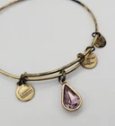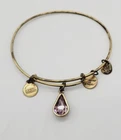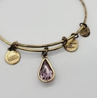 Alex & Ani Charm Bangle Bracelet Pink Teardrop Rhinestone Gold tone
