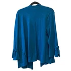 Excellent preloved condition Open waterfall front Bell sleeves with bow accent Pointelle knit accents at shoulders Perfect lightweight cardigan for casual holiday events and will transition well into the cooler months Rayon and nylon Machine wash gentle Approximate measurements in inches taken when laid flat Armpit to armpit 21.5 Length 26.5 Sleeve length 20.5 Please note color variations due to lighting. Please review all photos and feel free to ask questions. Approximate measurements in pics Dog friendly home Smoke free home Questions just ask Bundle and save Make offer